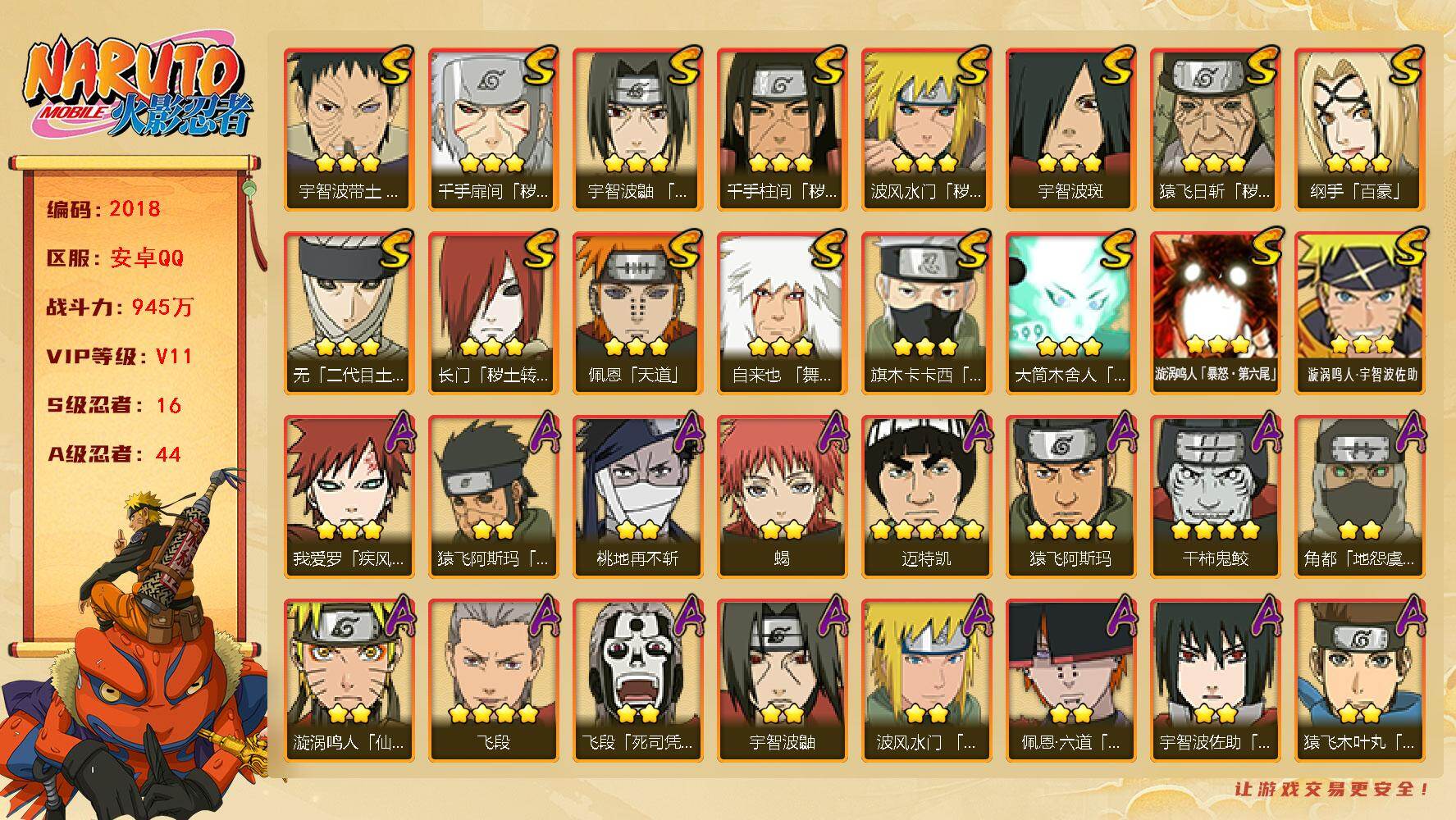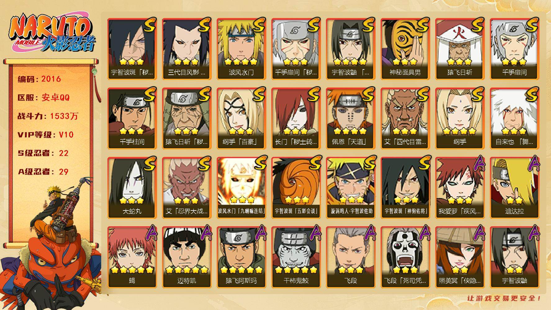 (可转苹果)214w战力十尾3S+夏日鼬9A战力214账号等