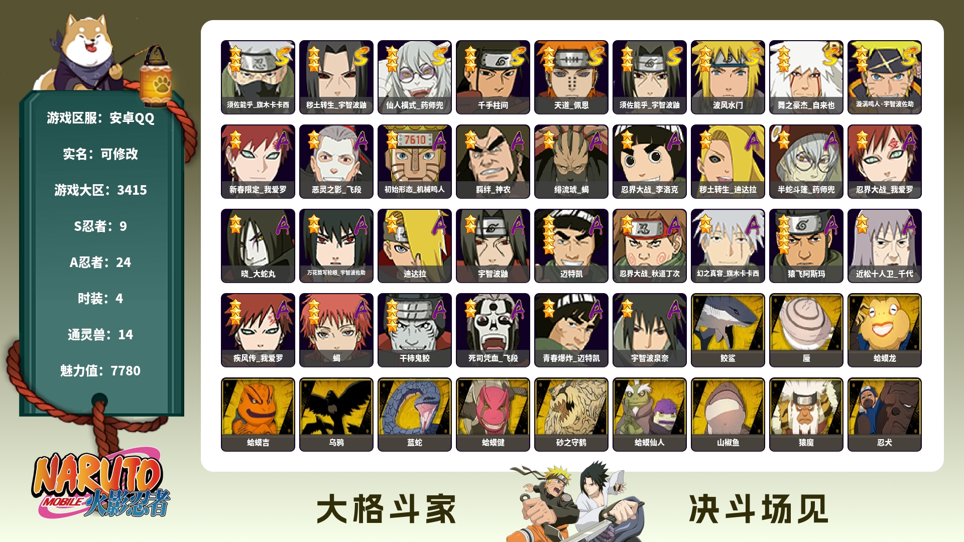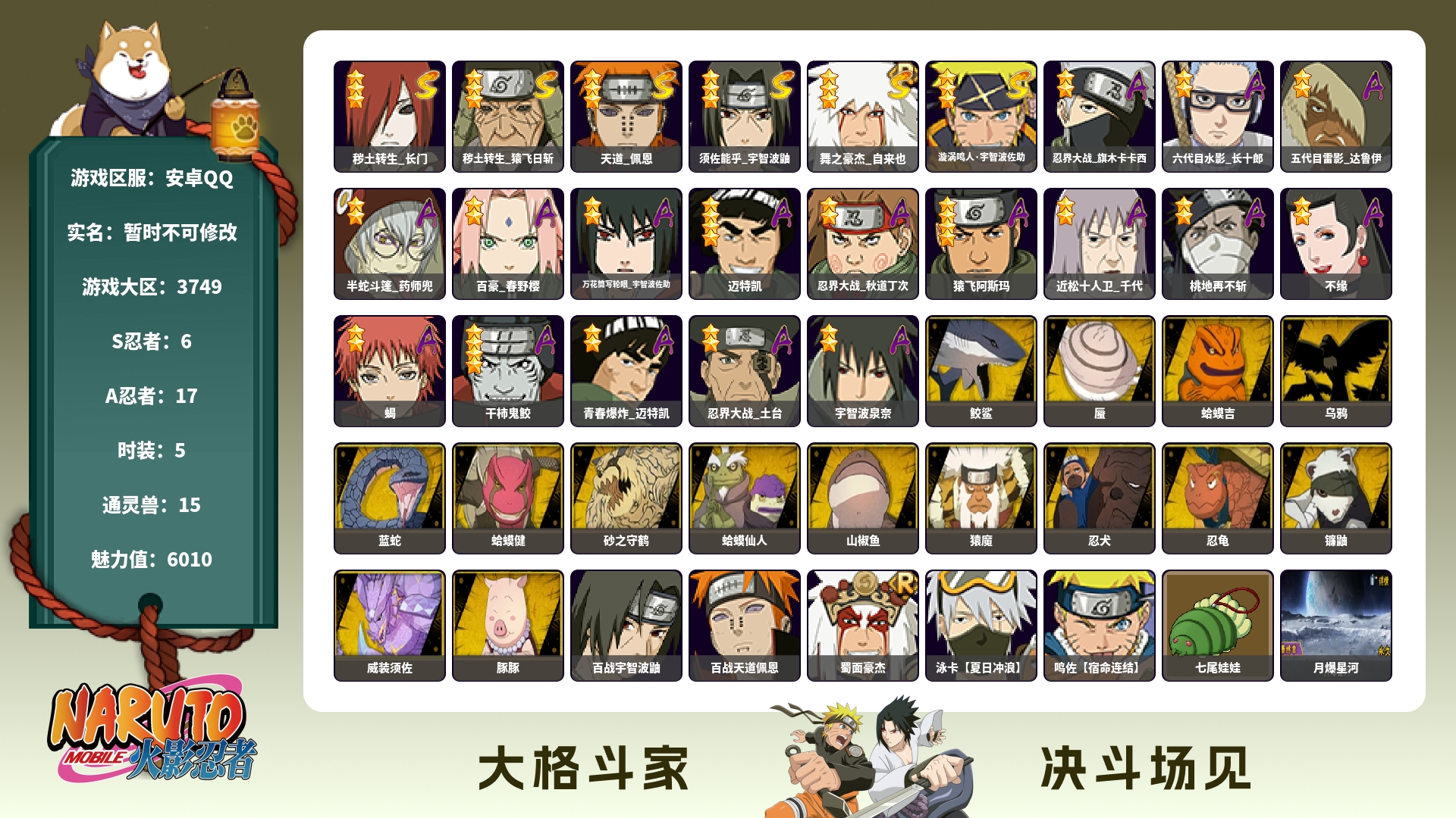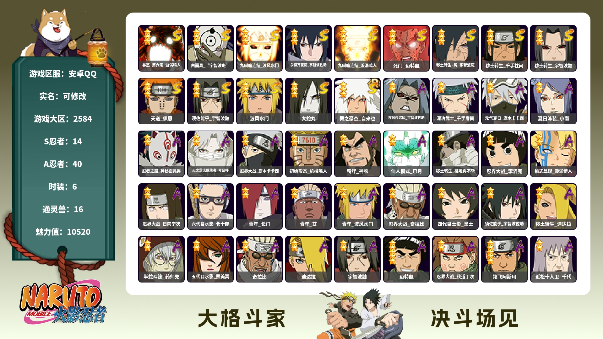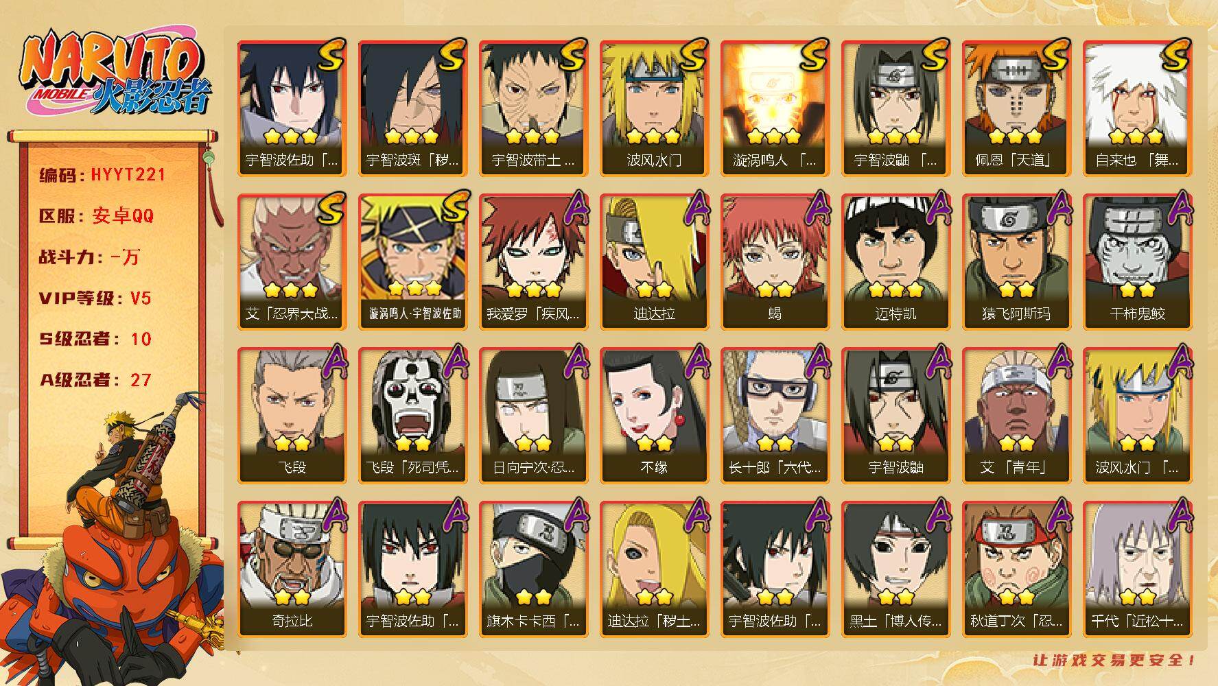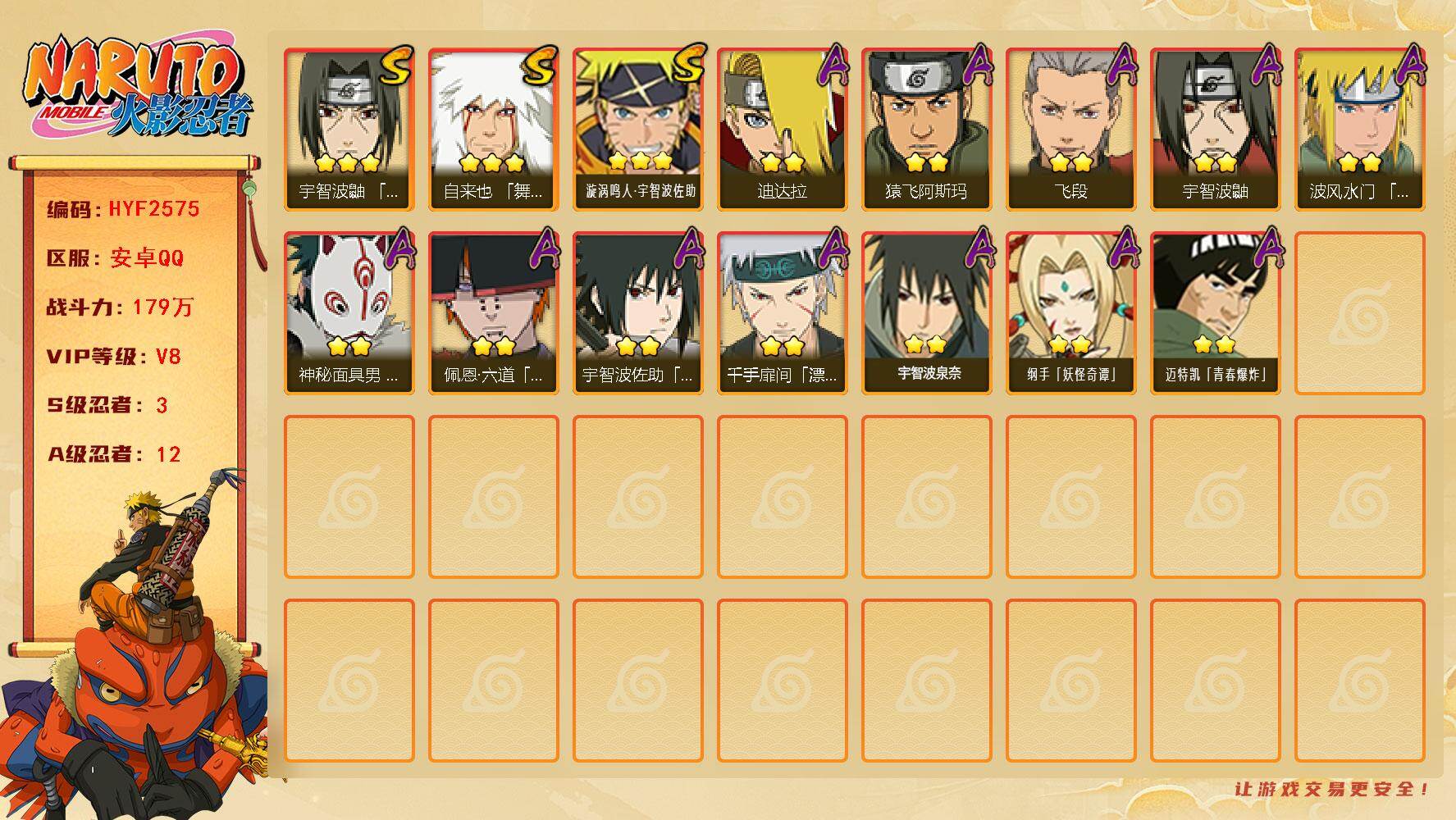 141w战力秽土扉间3s+咒印佐助6a战力141账号等级88