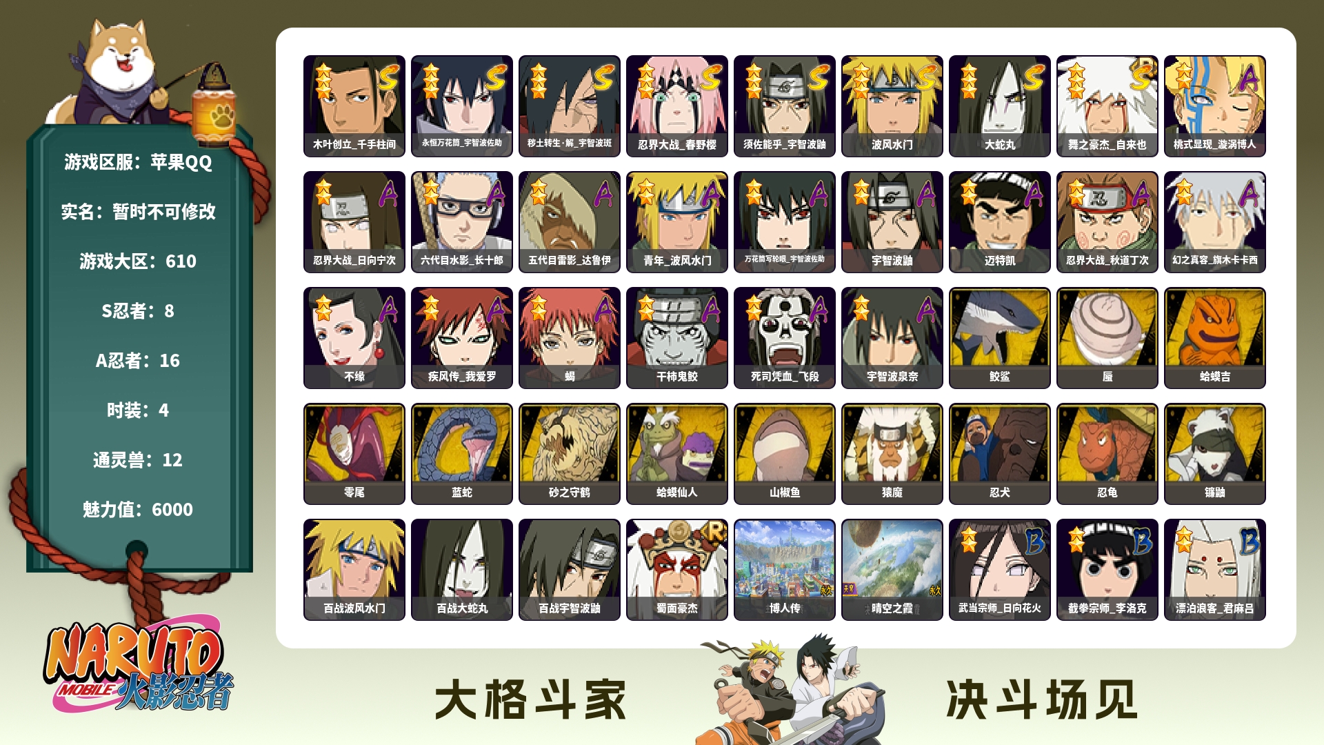 (可转苹果)600w战力须卡秽土鼬活柱9s+新春沙娃2个19
