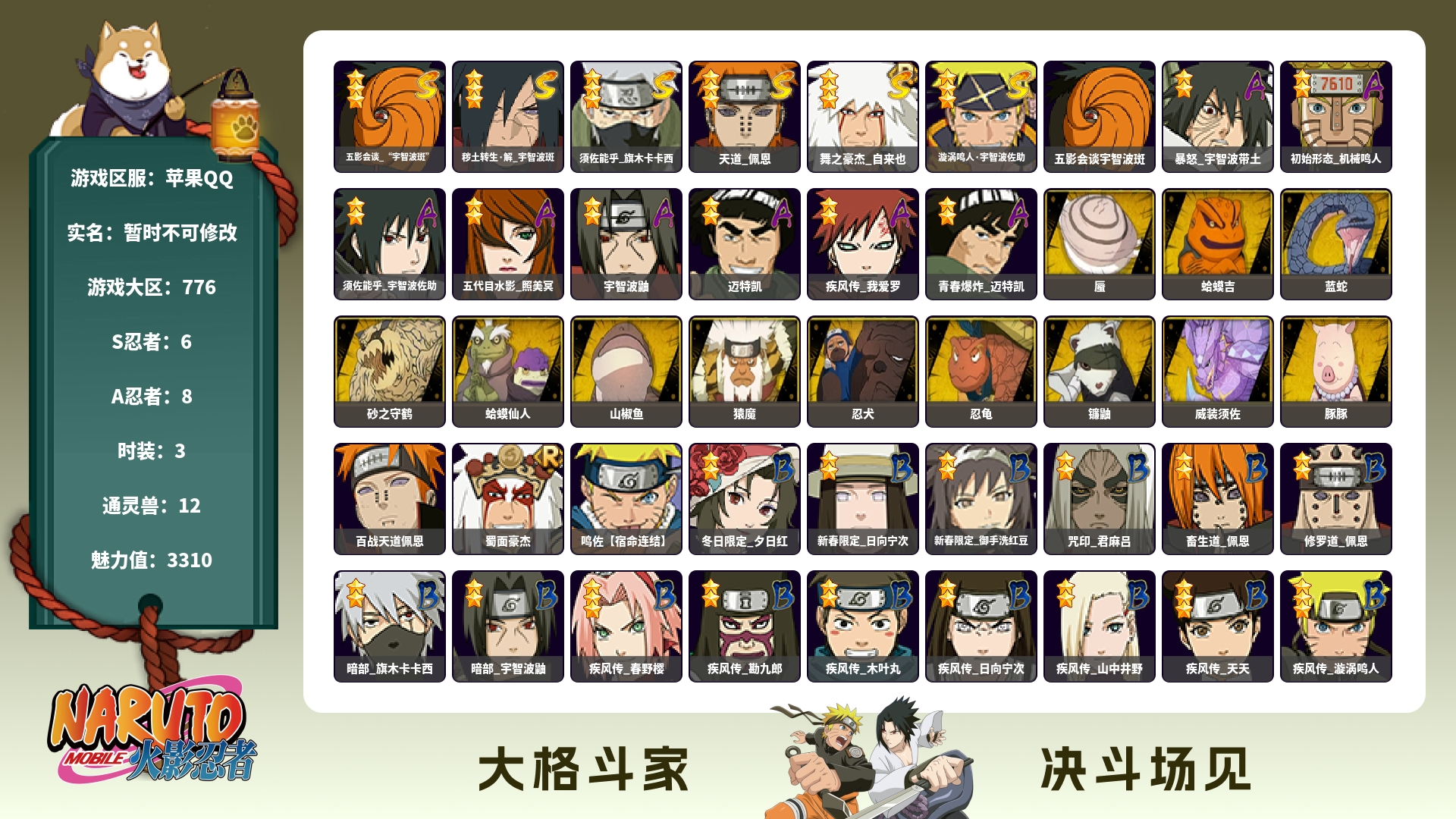(可转苹果)448w战力五影斑+红夜9s+漂泊小南+暴怒带土