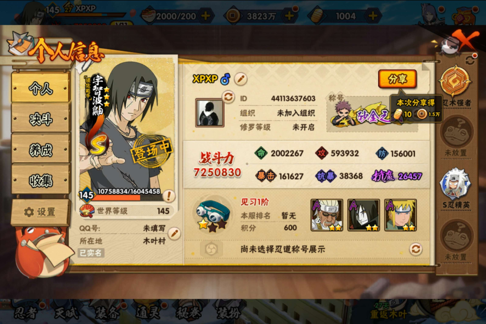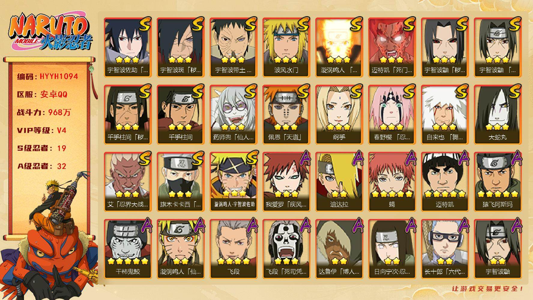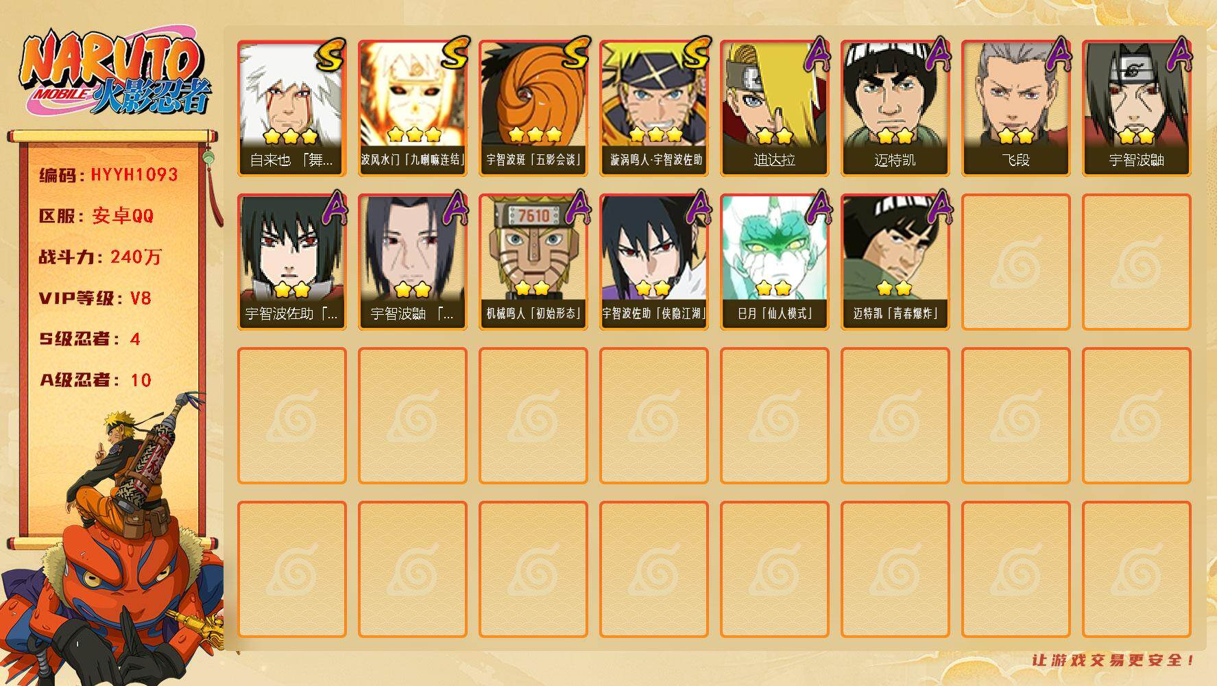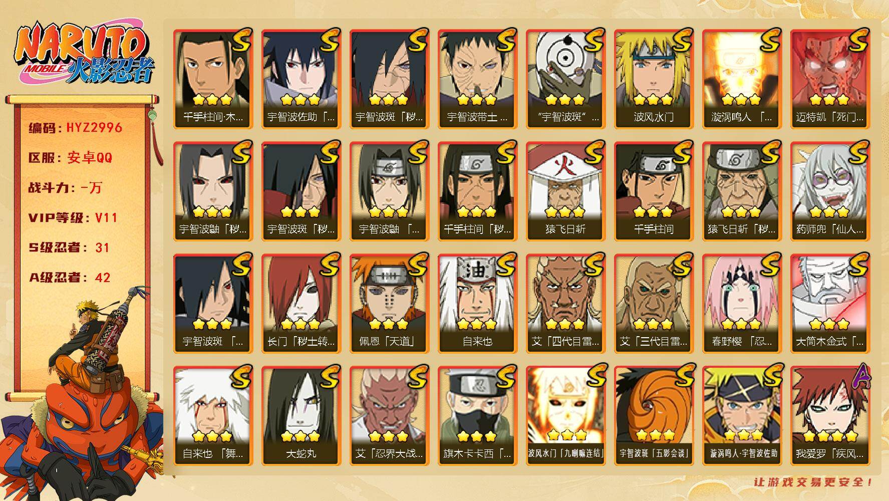 新手入坑免肝首选号-安卓QQ-可二次-S忍者数:8- A忍