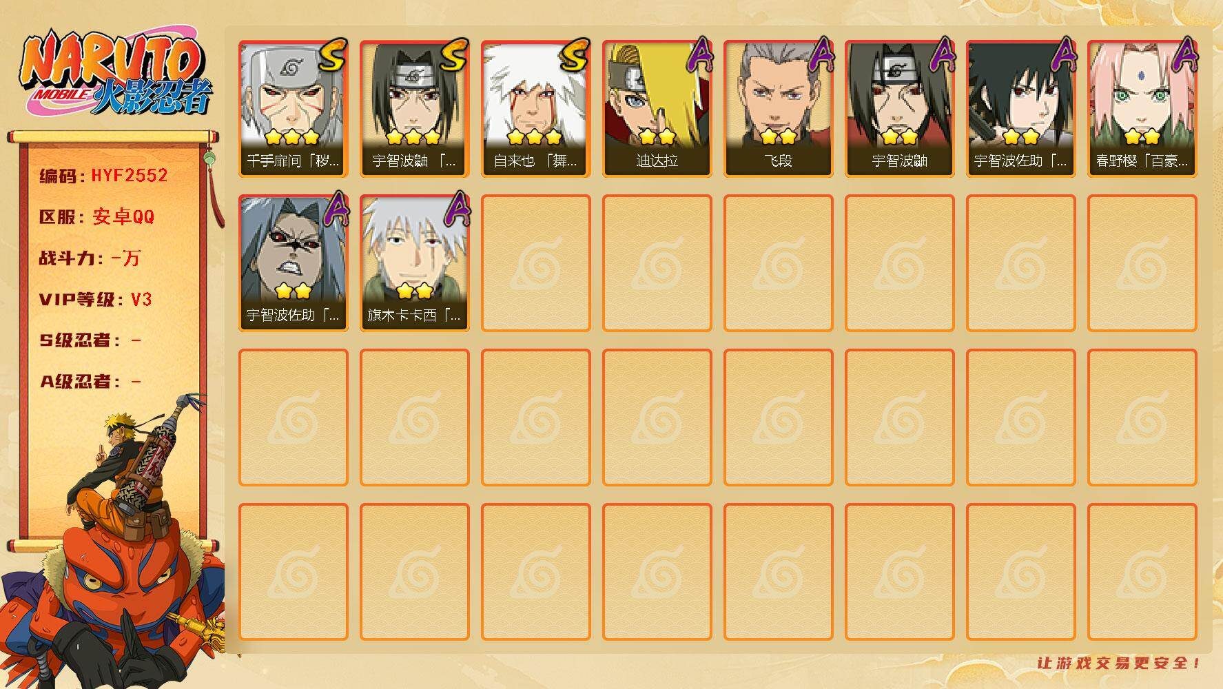 【S忍者10 A忍者26 通灵16】【安卓Q-2269区-143级-V5-658