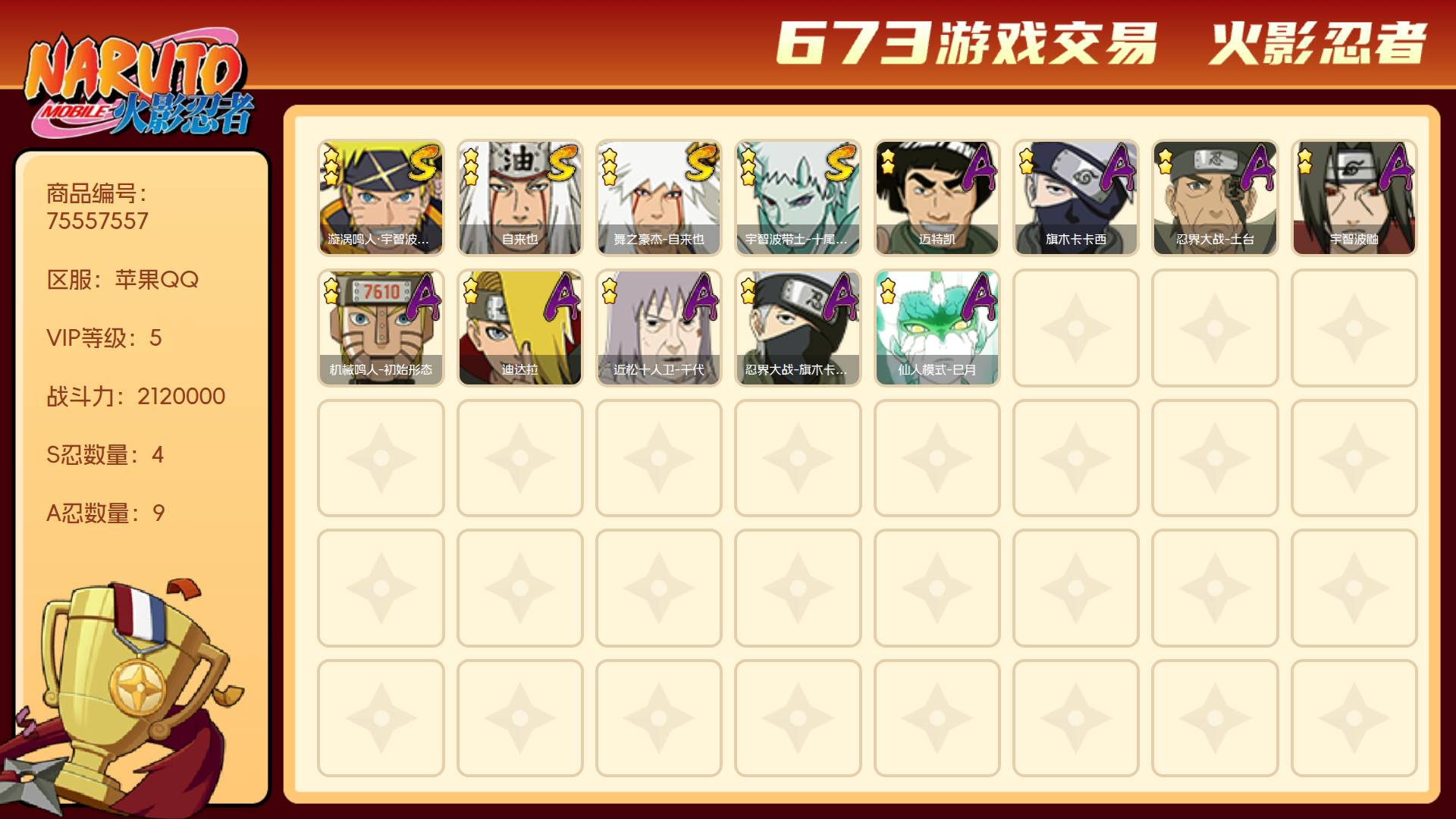 S忍者5 A忍者12 通灵10 -3755区-127级-V4-249万