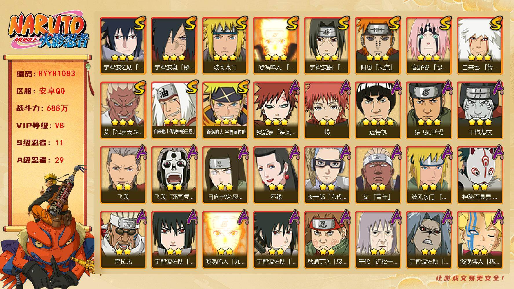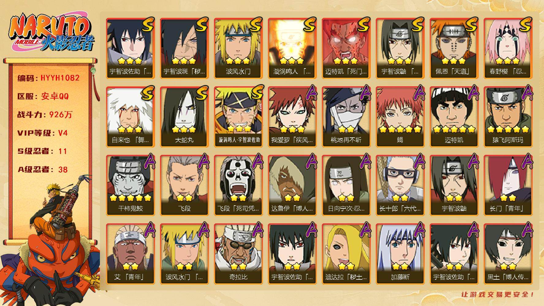 暗区火影一体号,上手直接玩火影还有小号也有挺A忍