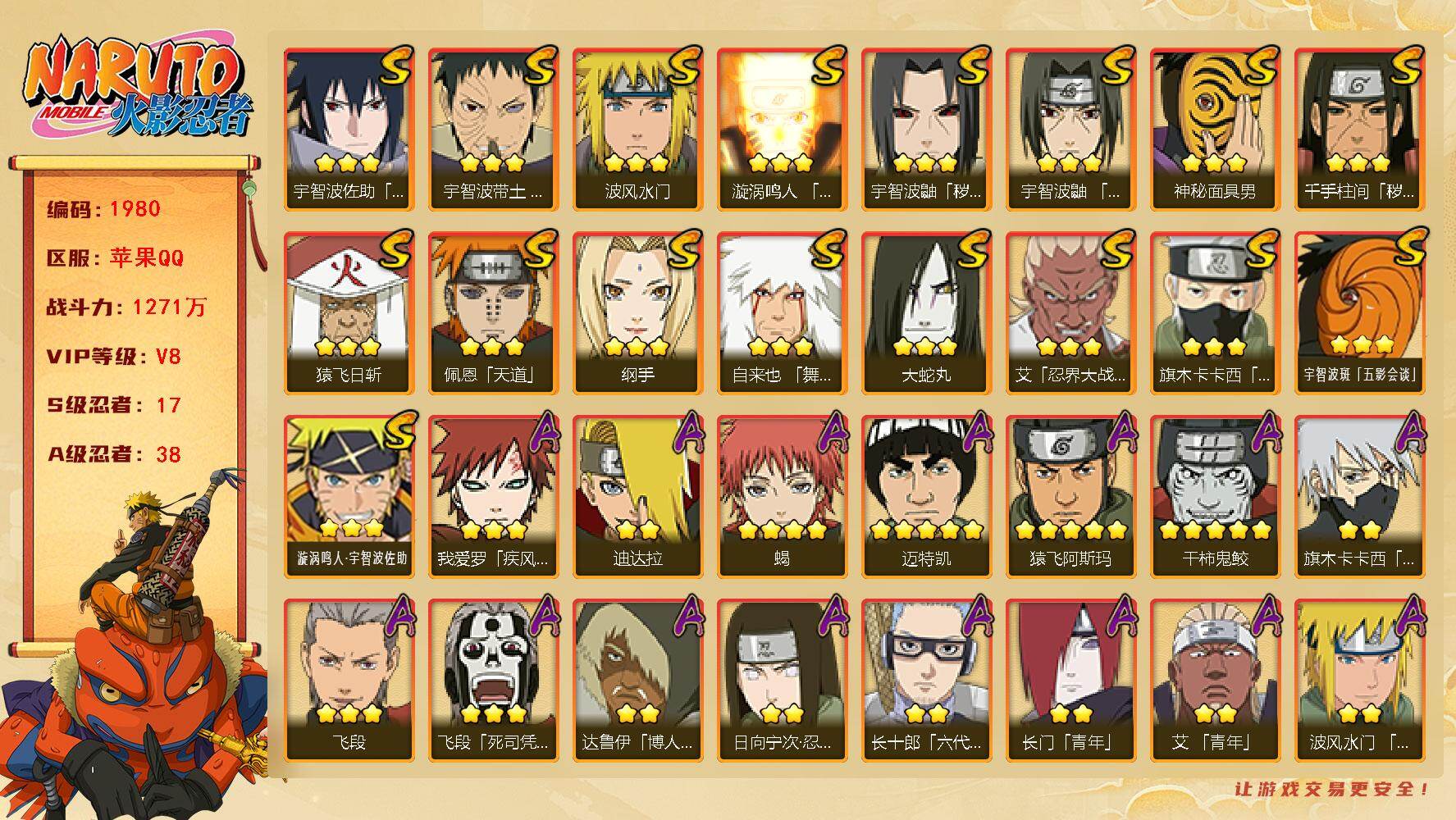 V8 1271万战力 17S-38A 金币2万 50高招卷 自来也69片 木叶