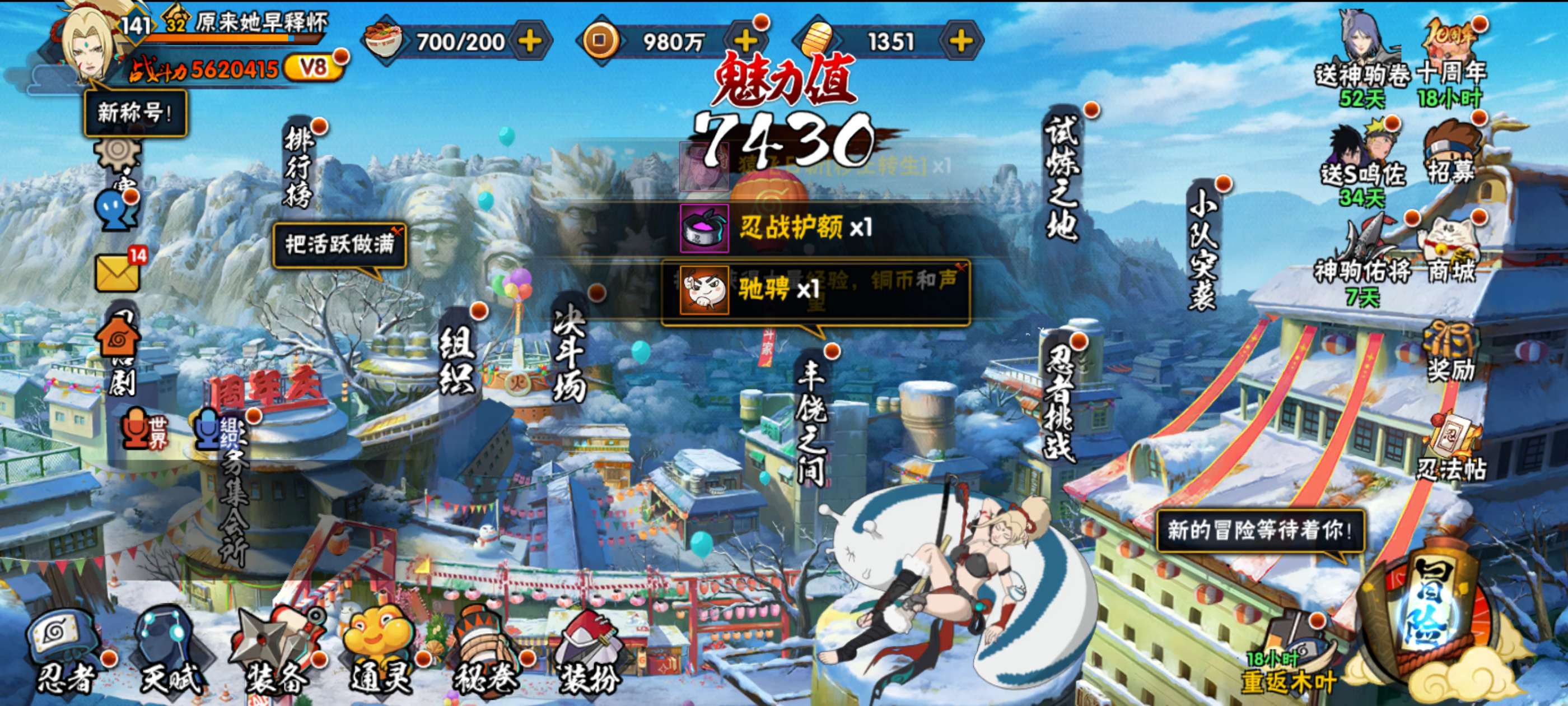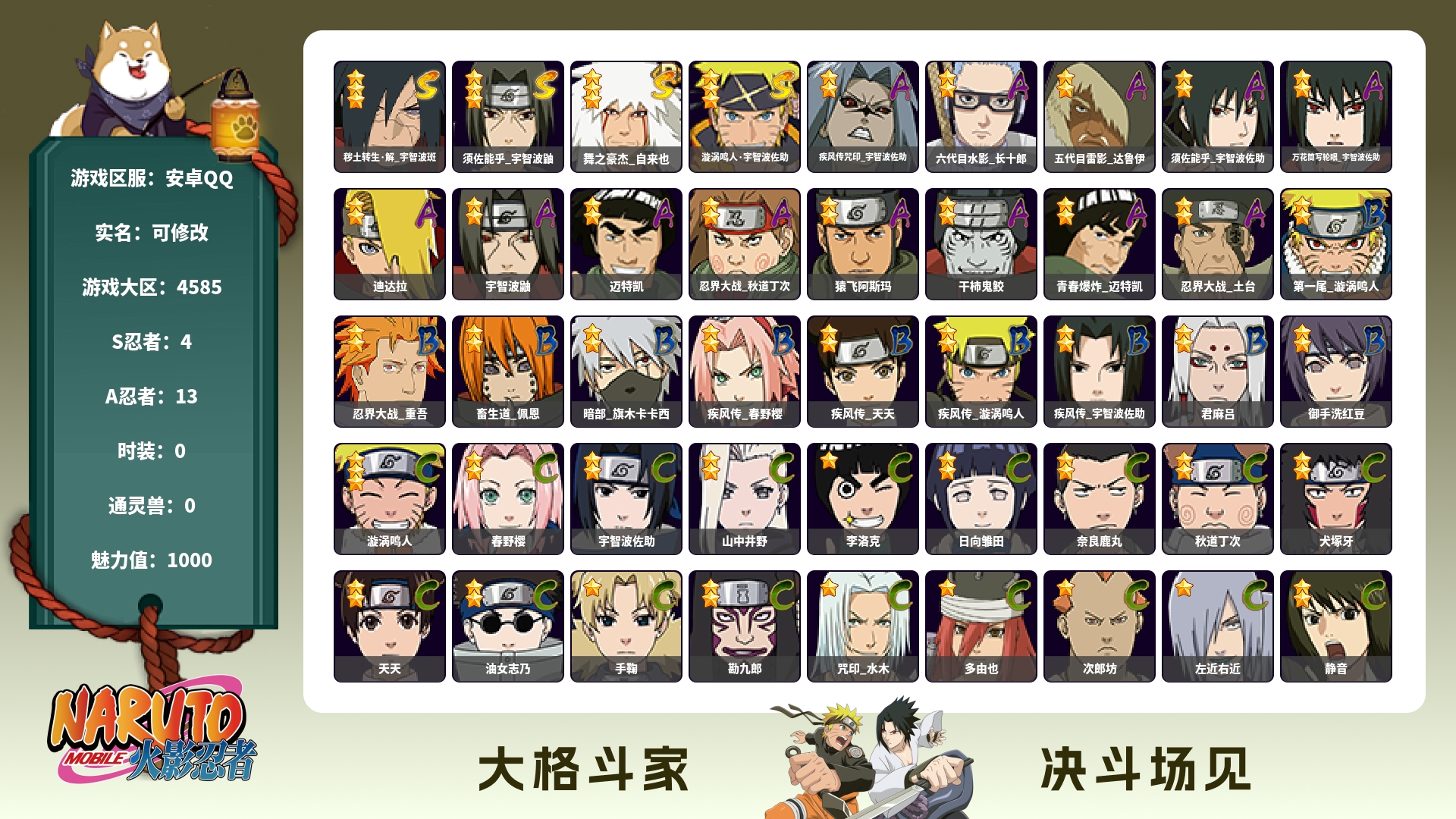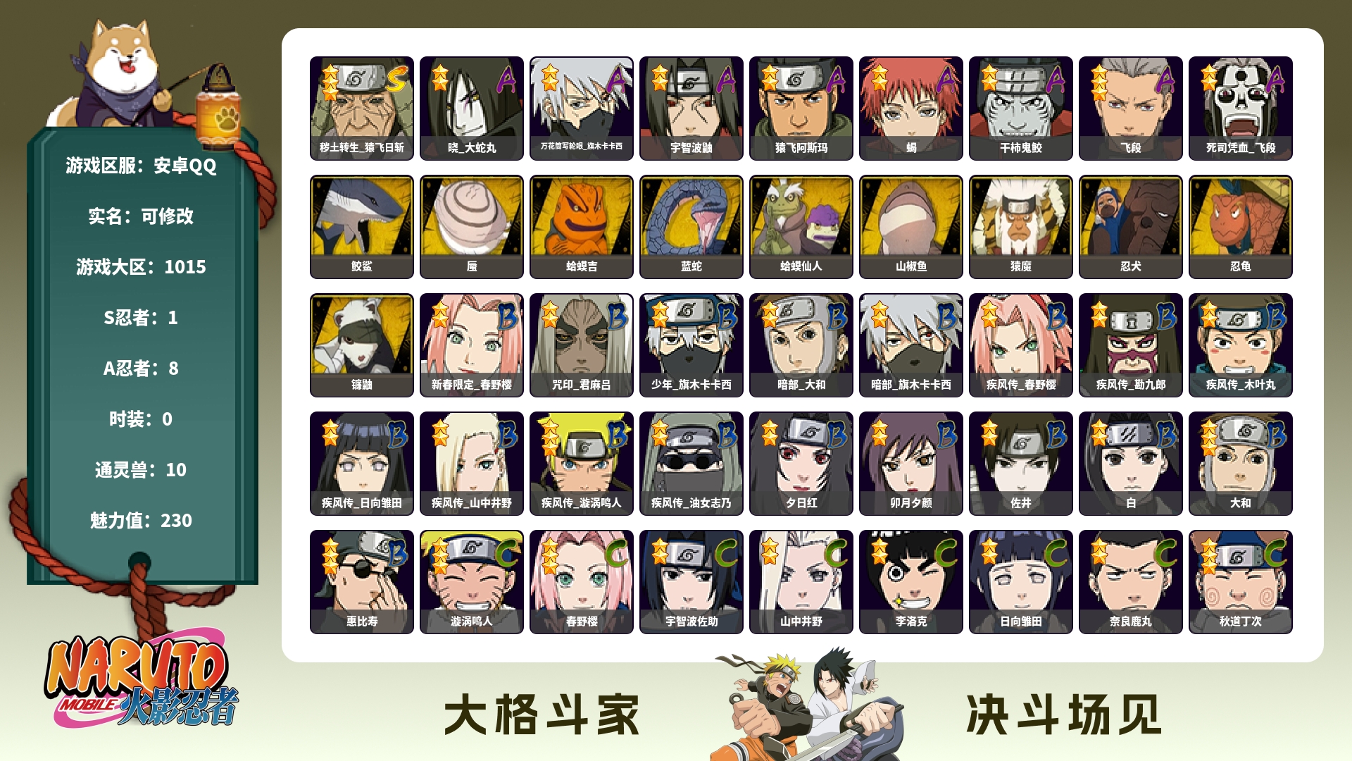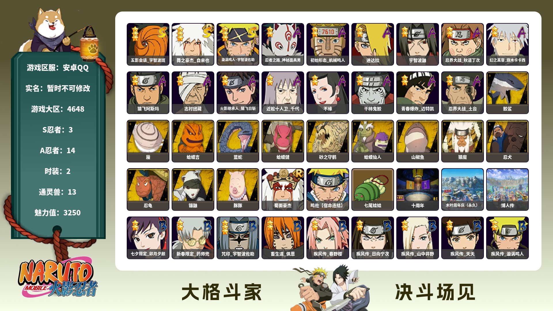 角色等级135 金币600 战斗力5600000 S忍15 A忍25 9 段位中忍