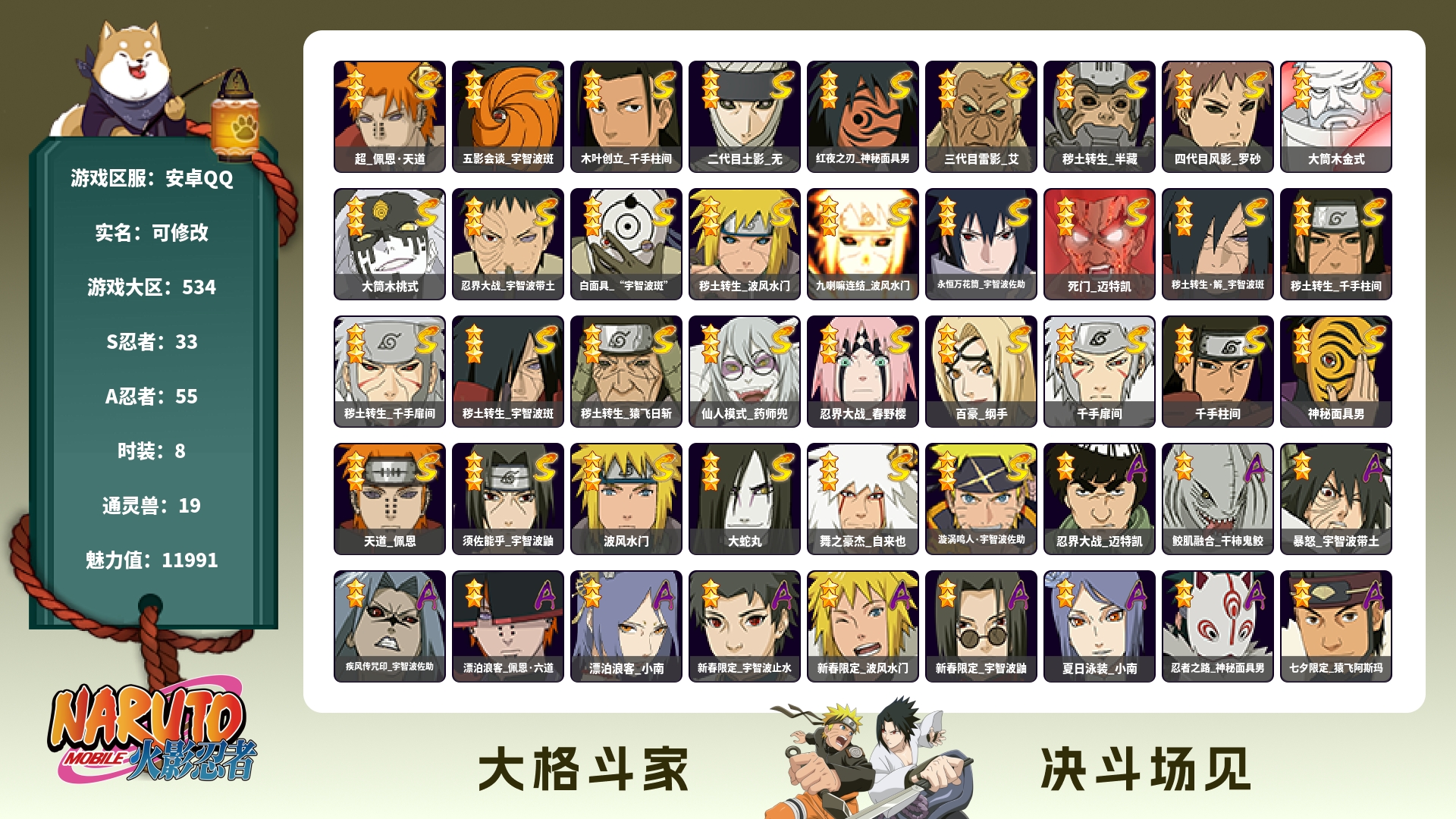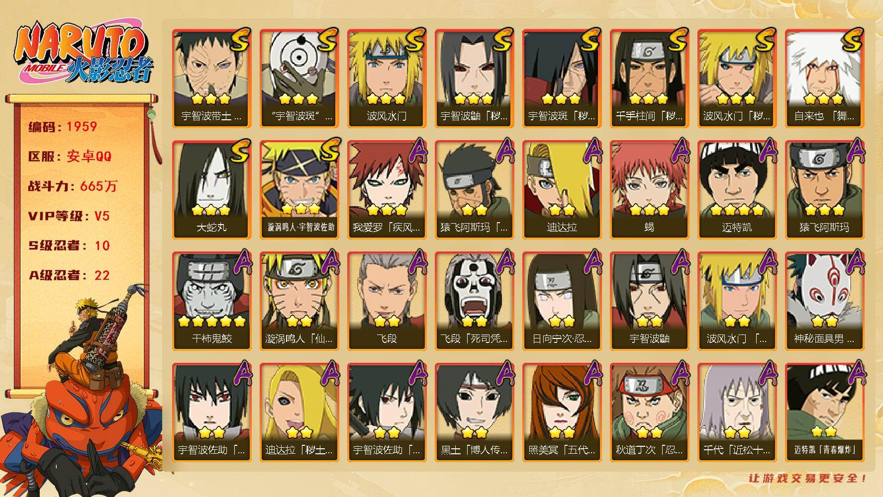 (可转苹果)165W战力五影斑/3S+198直购A妖怪纲手/