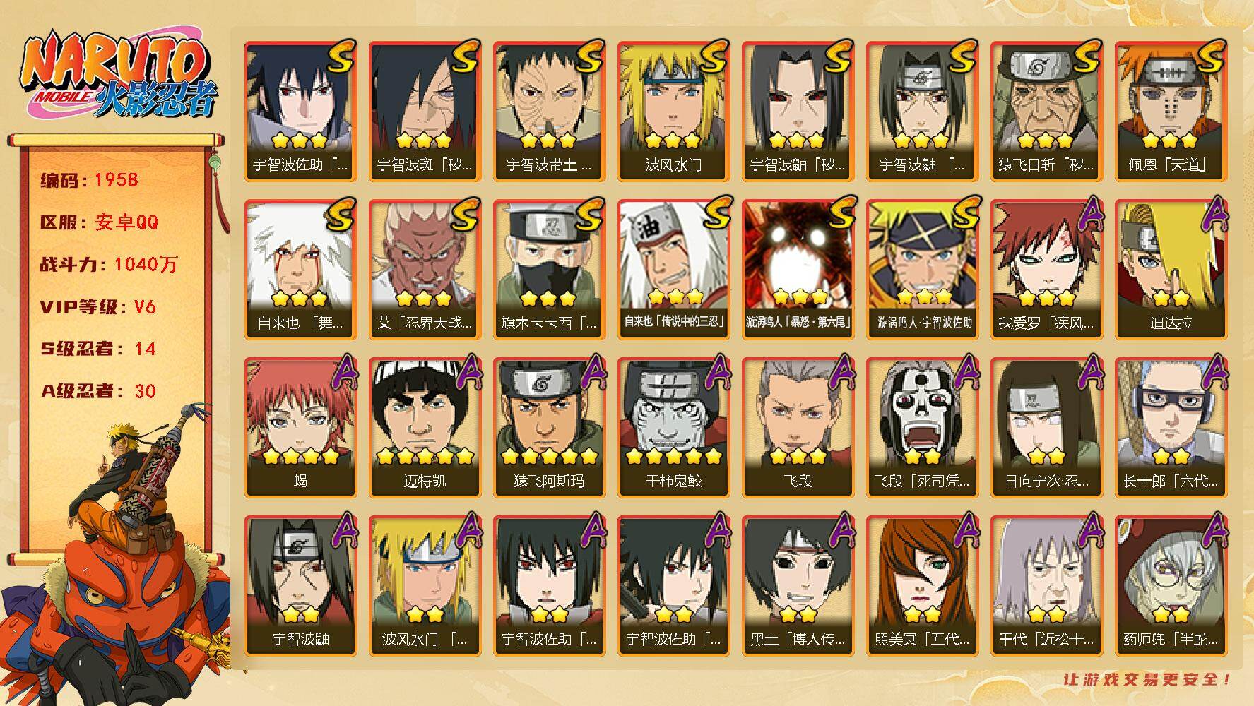 (可免费转苹果)v6 14S 30A 1040w战力 纲手70片 十尾带土51