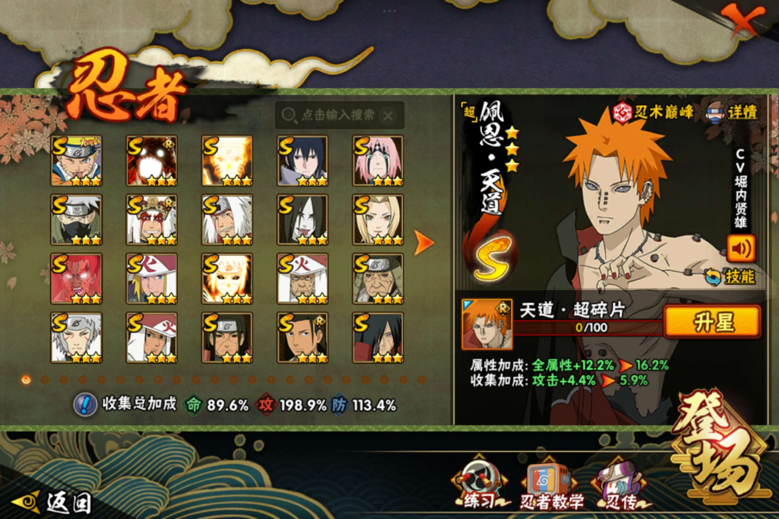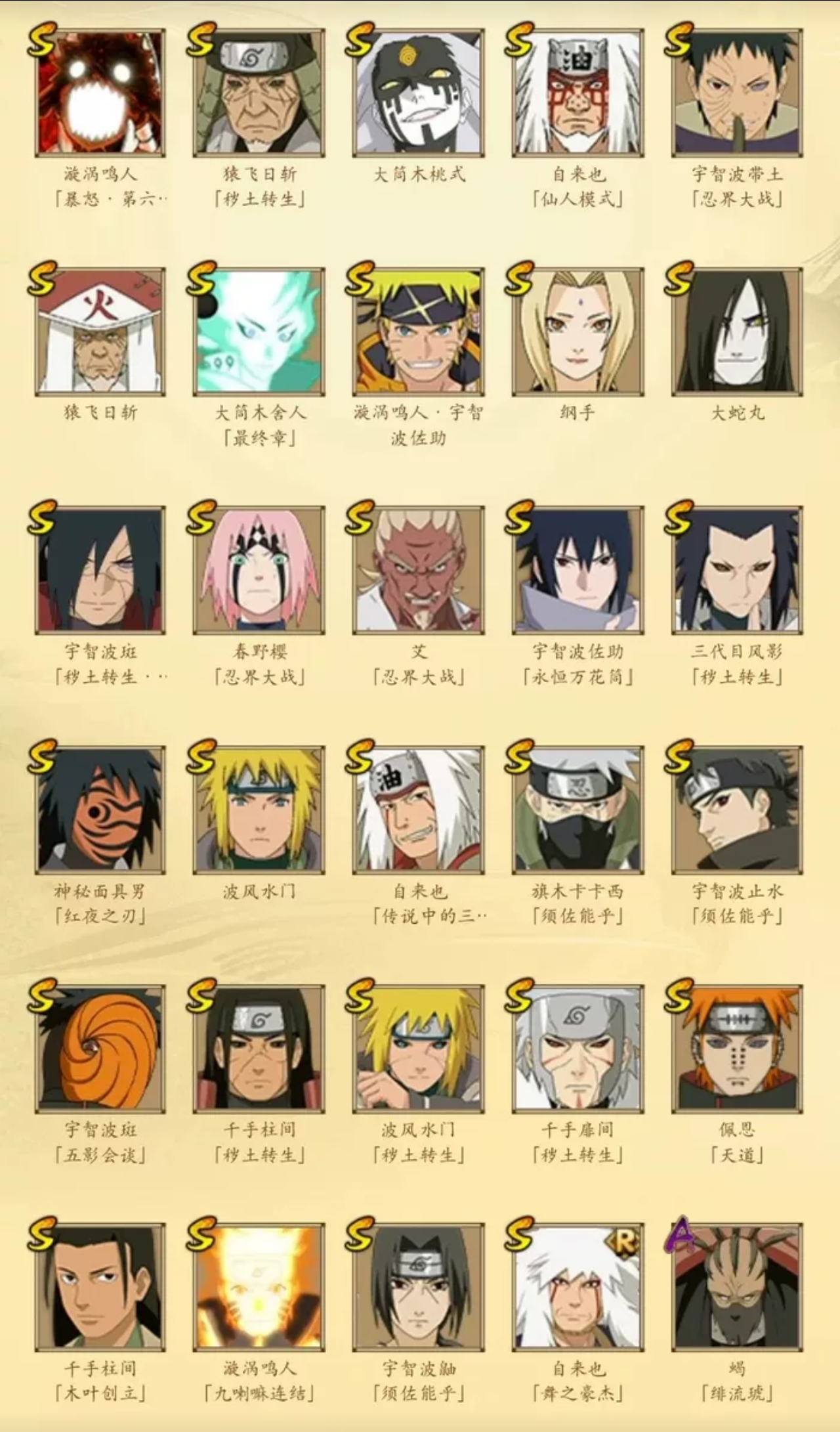 【S级忍者】:宇智波鼬「须佐能乎」(3星),自来也「舞之豪