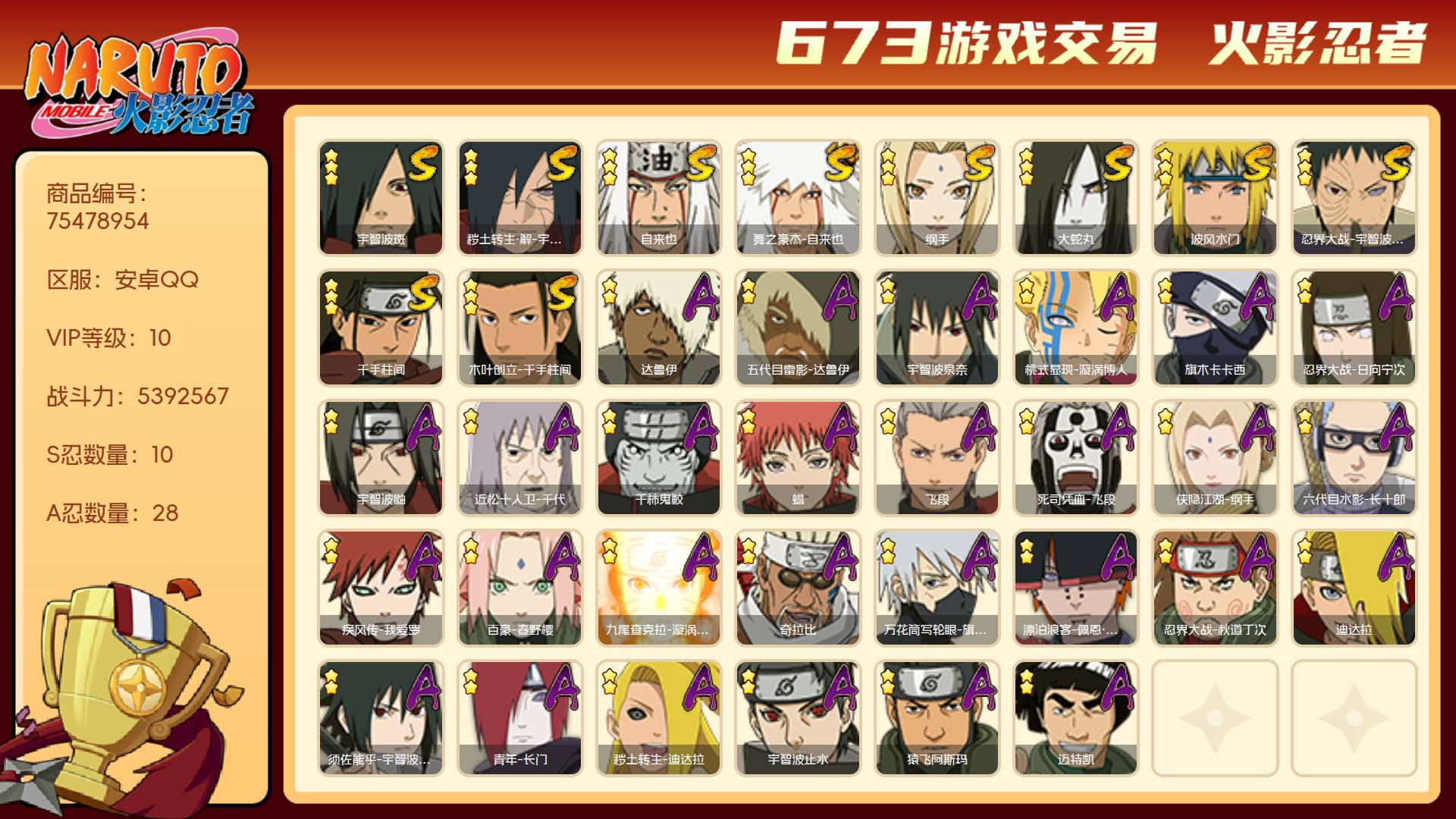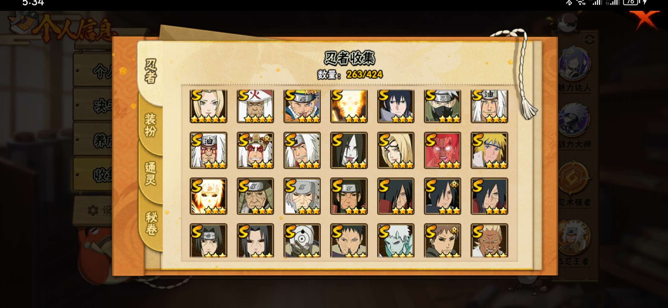 V11/战力643W/S忍14/A忍39/通灵兽17/4星干柿鬼鲛/2星大野木「侠隐江湖」/侠隐江湖-纲手/