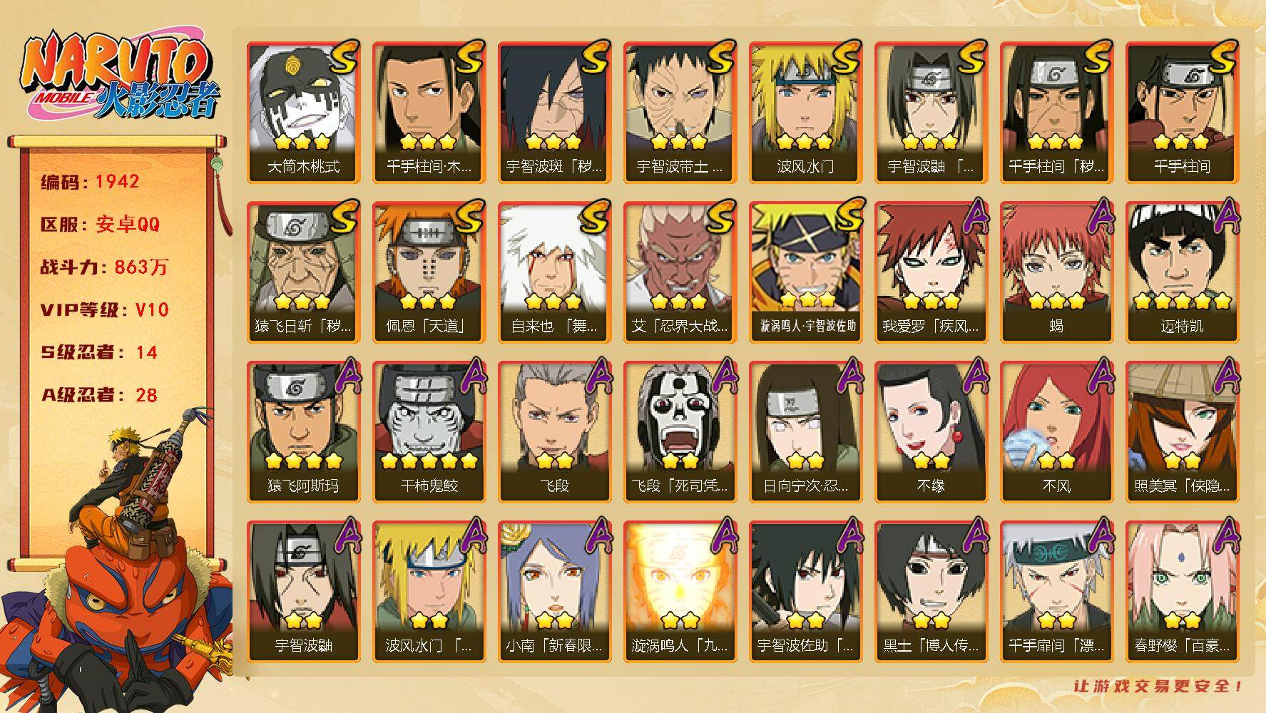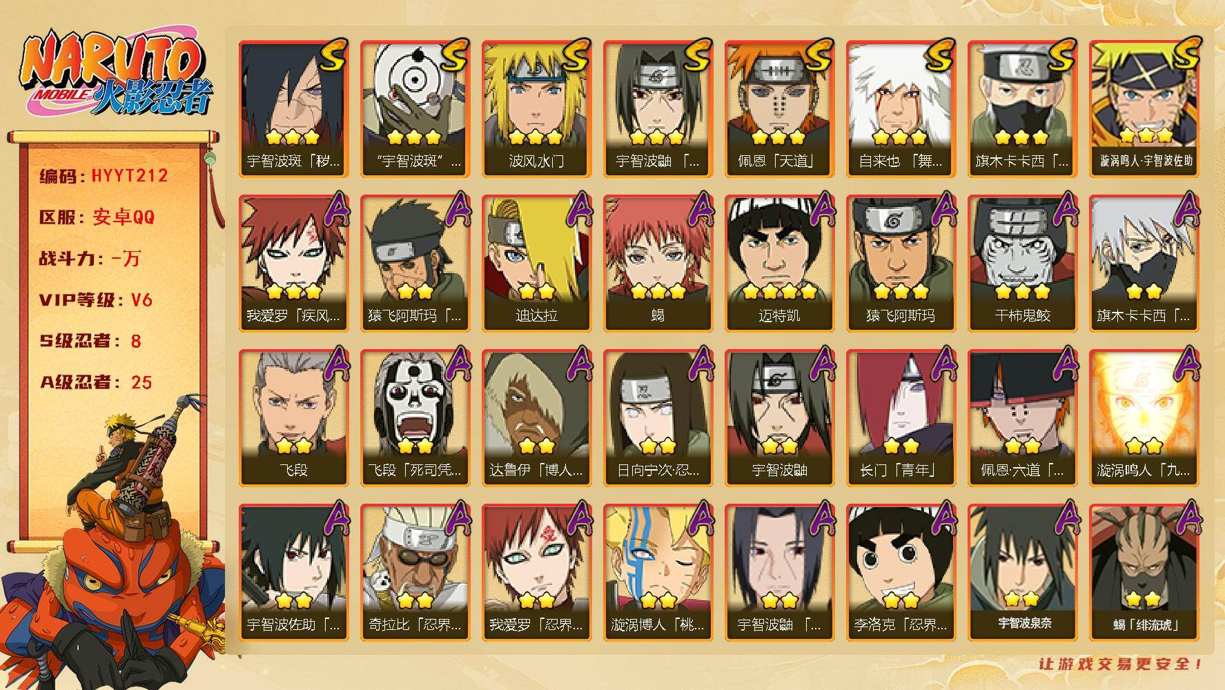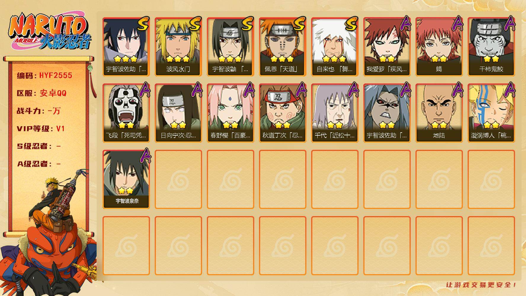 安卓qq-600万战力号-新春多-S忍者数:11- A忍者