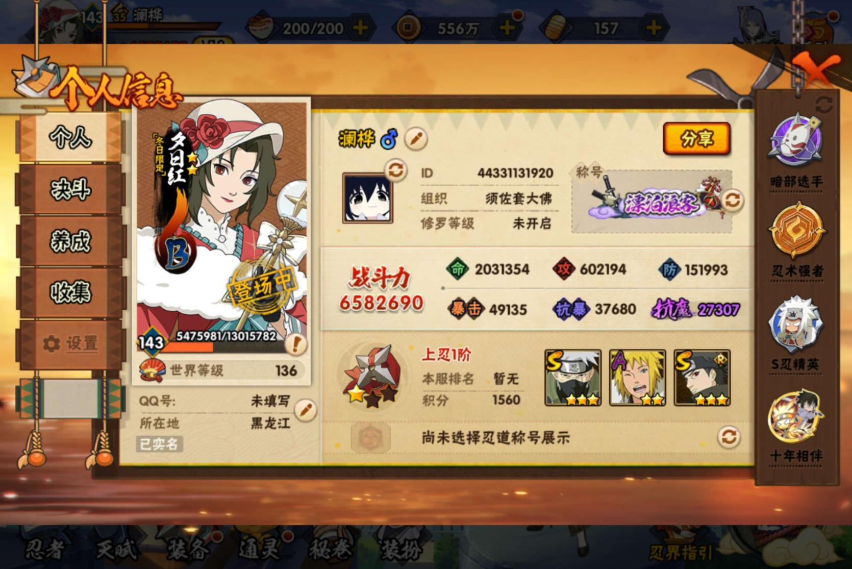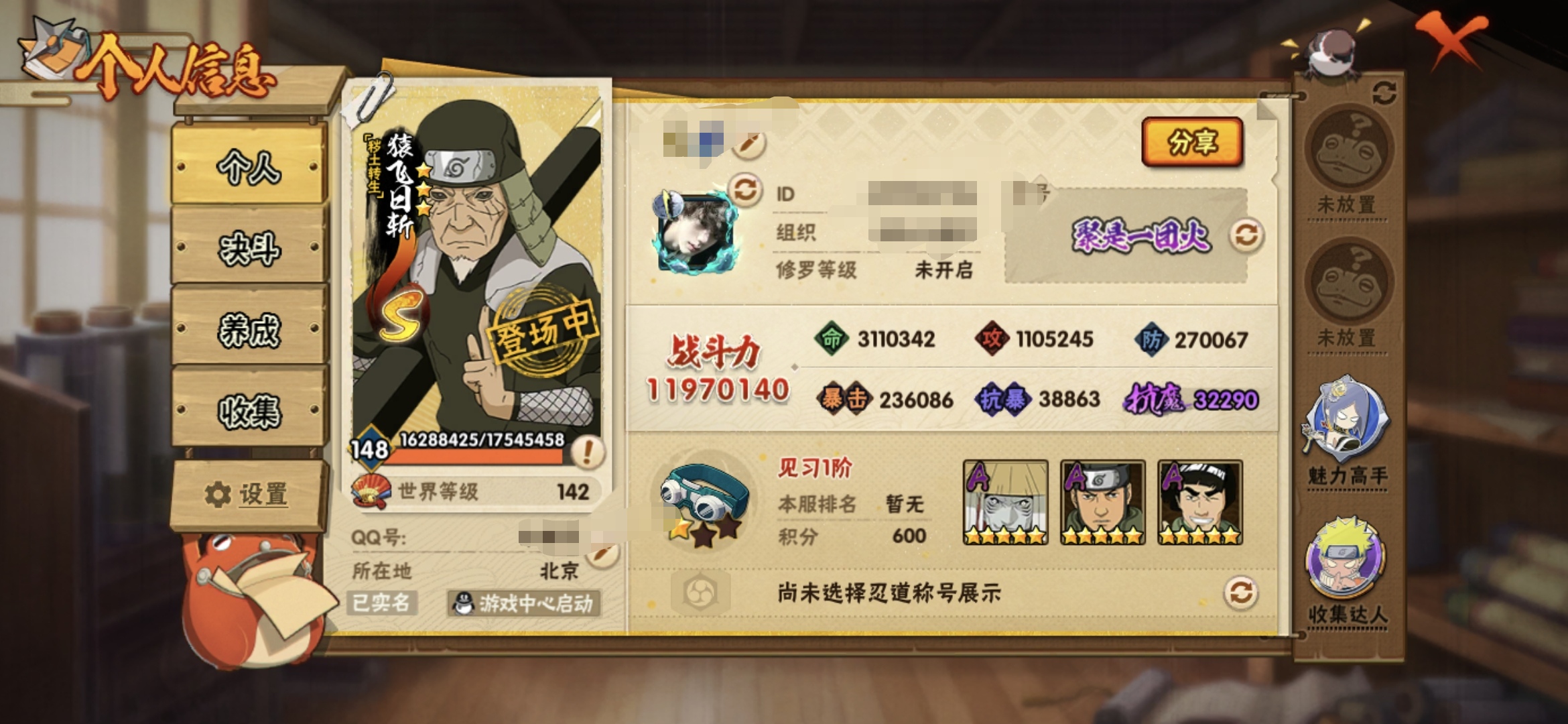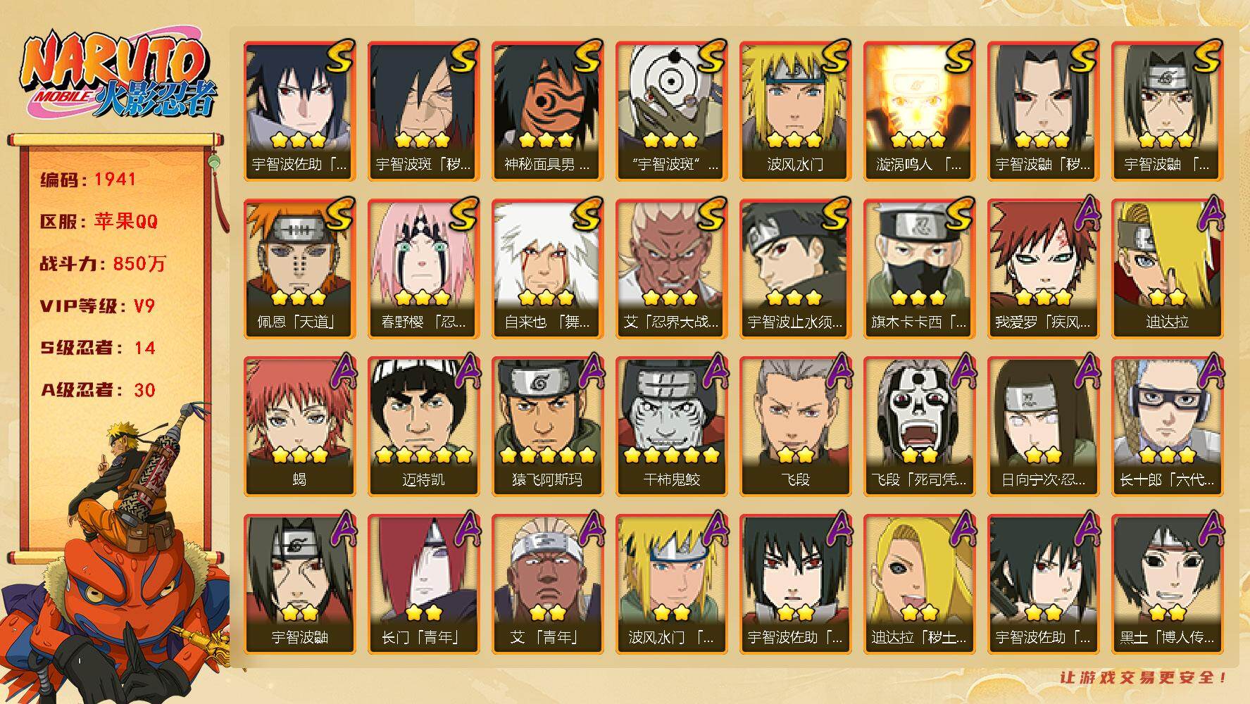 安卓qq-600万战力号-新春多-S忍者数:11- A忍者