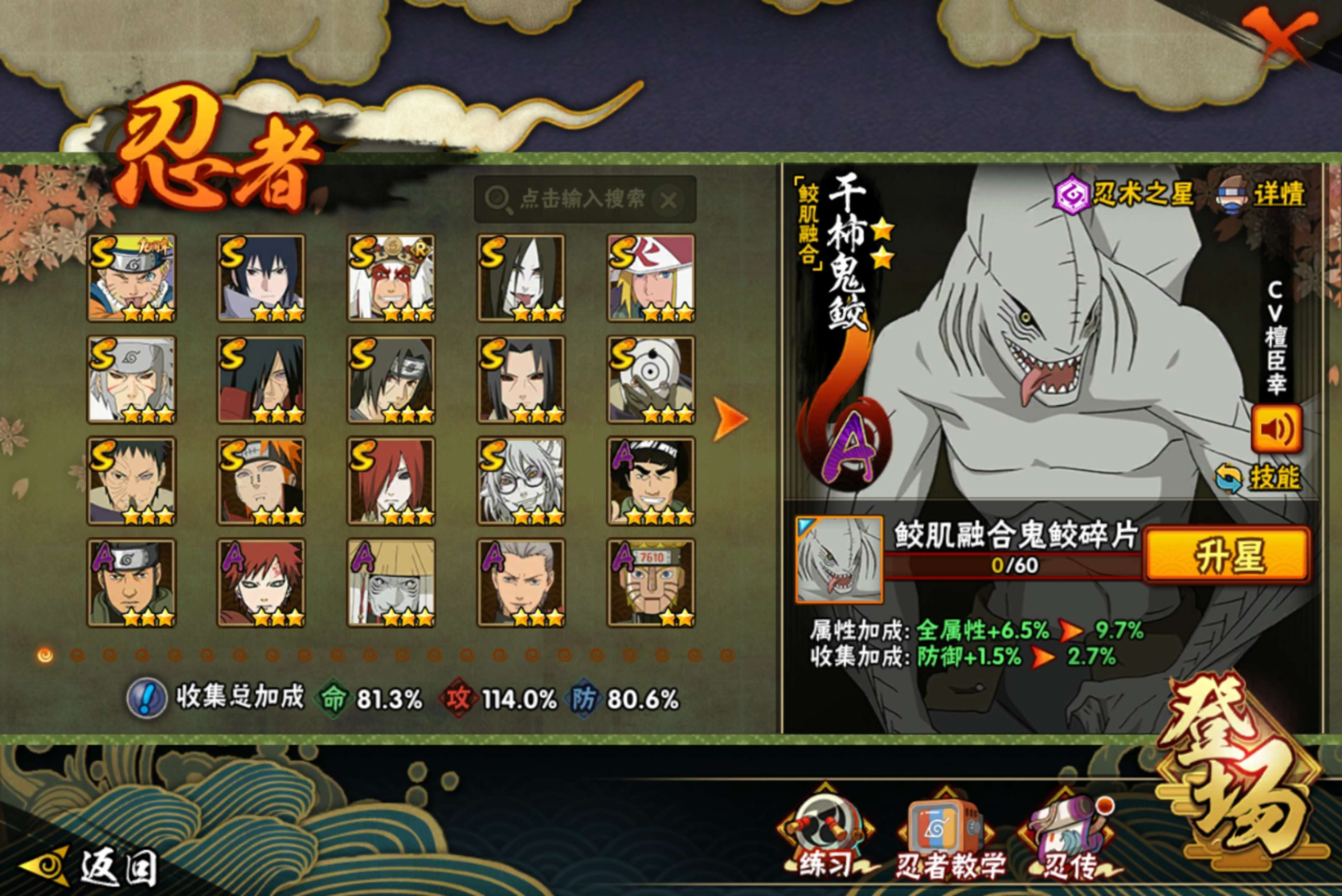 v6,14S,27A,764万战力,十尾72片,zp3452【S级忍者】:千