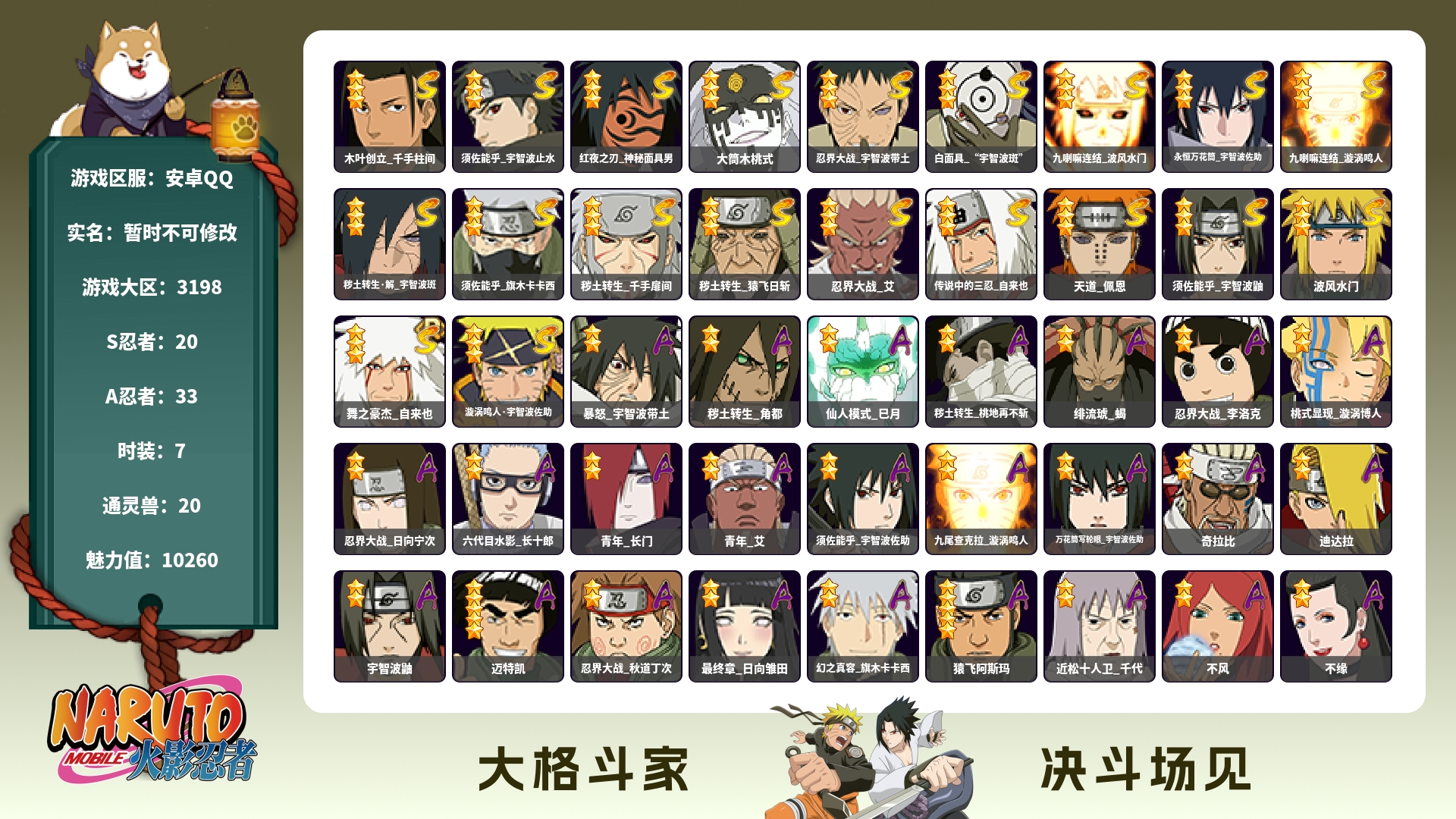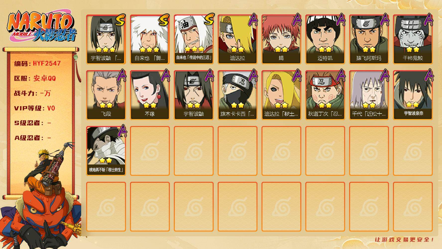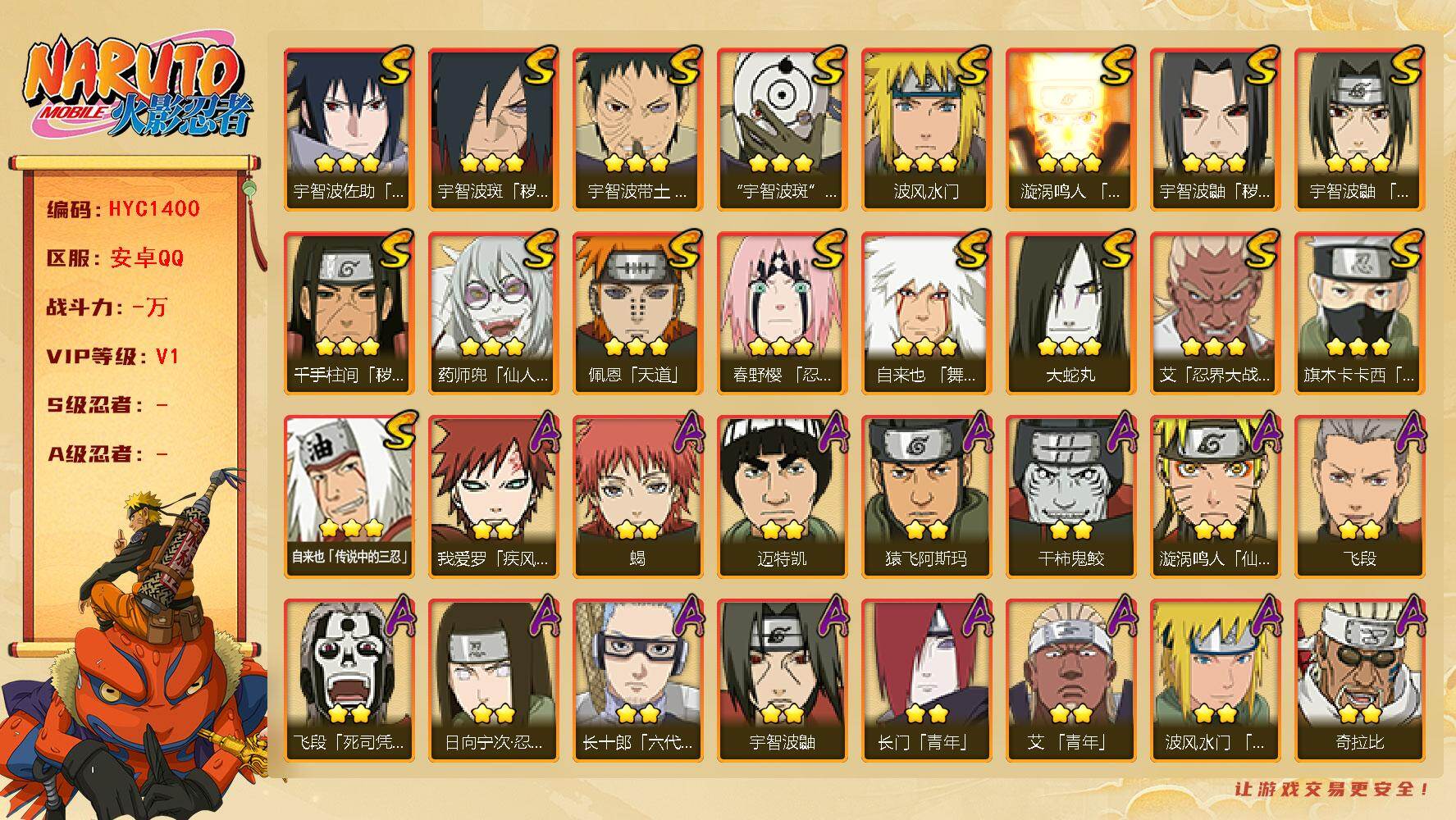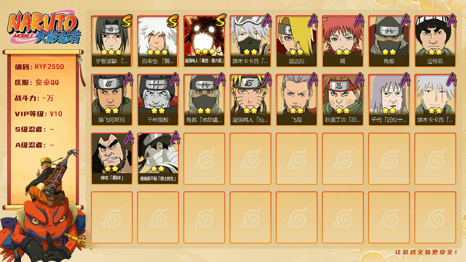(可免费转苹果)V5 15S 33A 823万战力 热门A忍战我爱罗、七夕阿斯