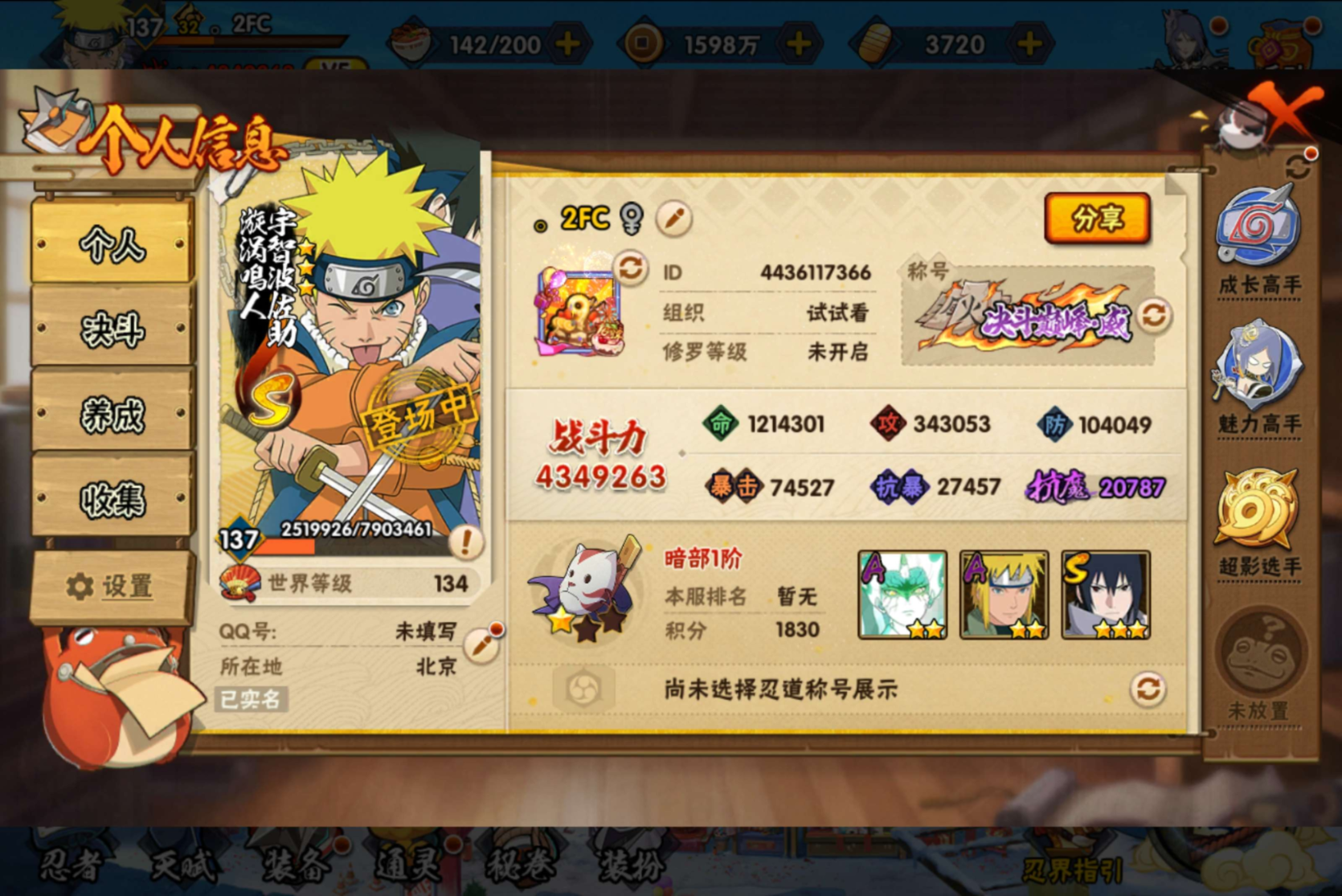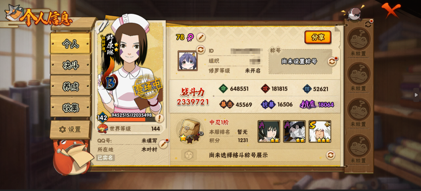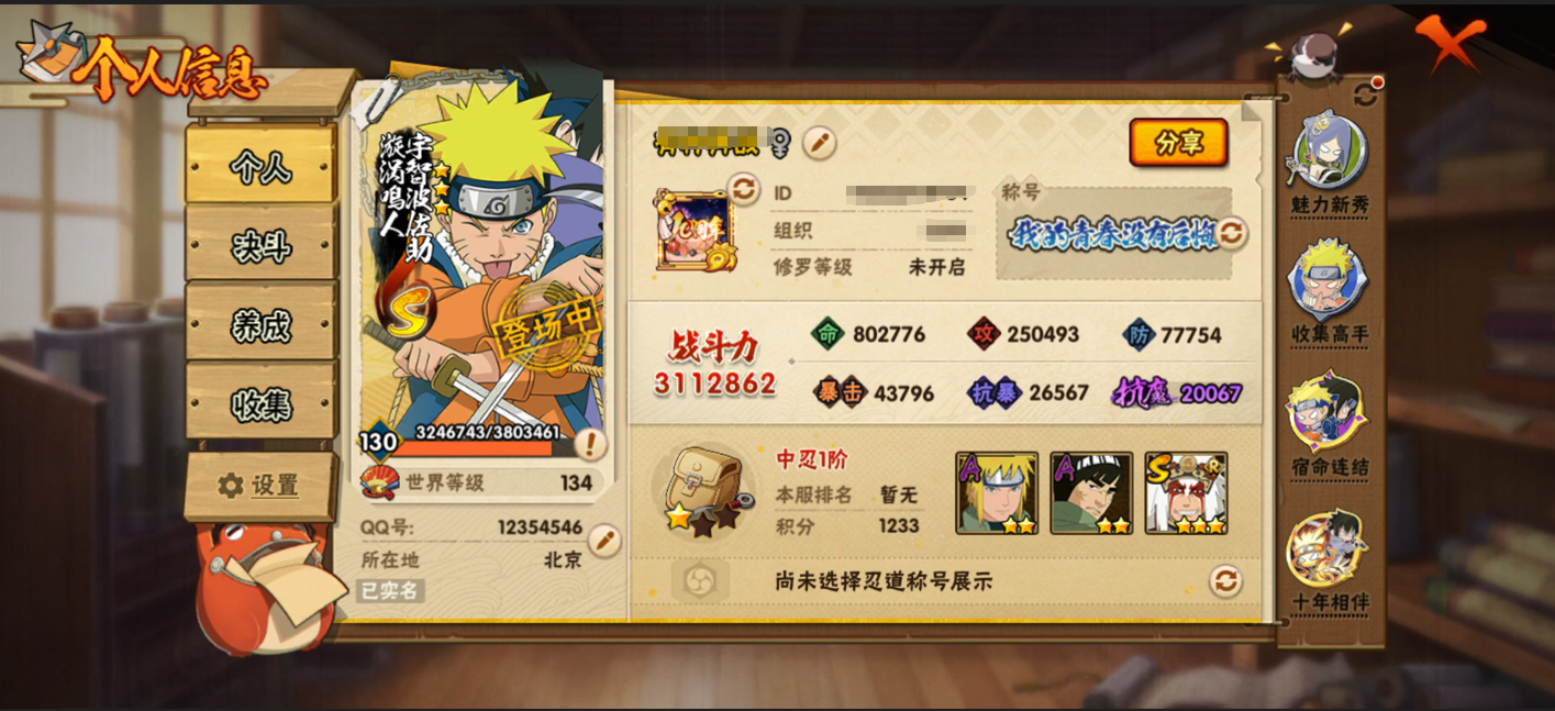 安卓QQ-可二次-新手入坑免肝首选号-v7-S忍者数:9-
