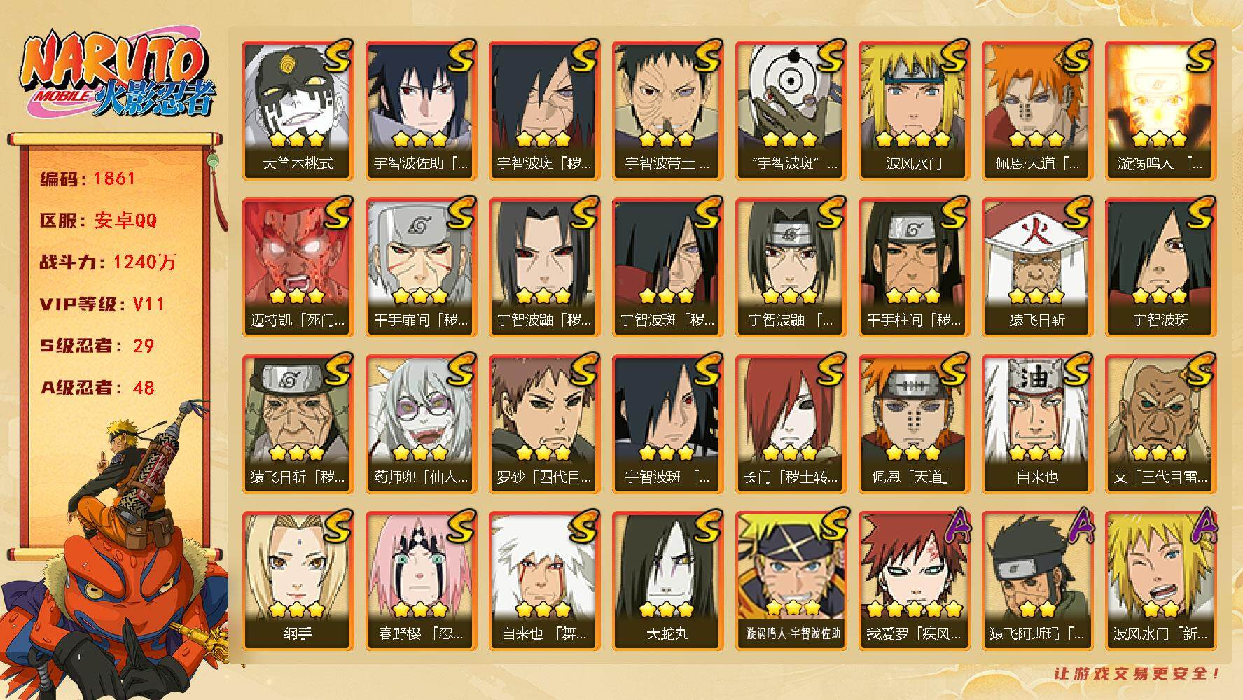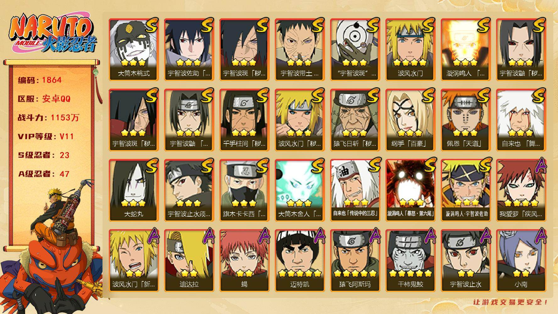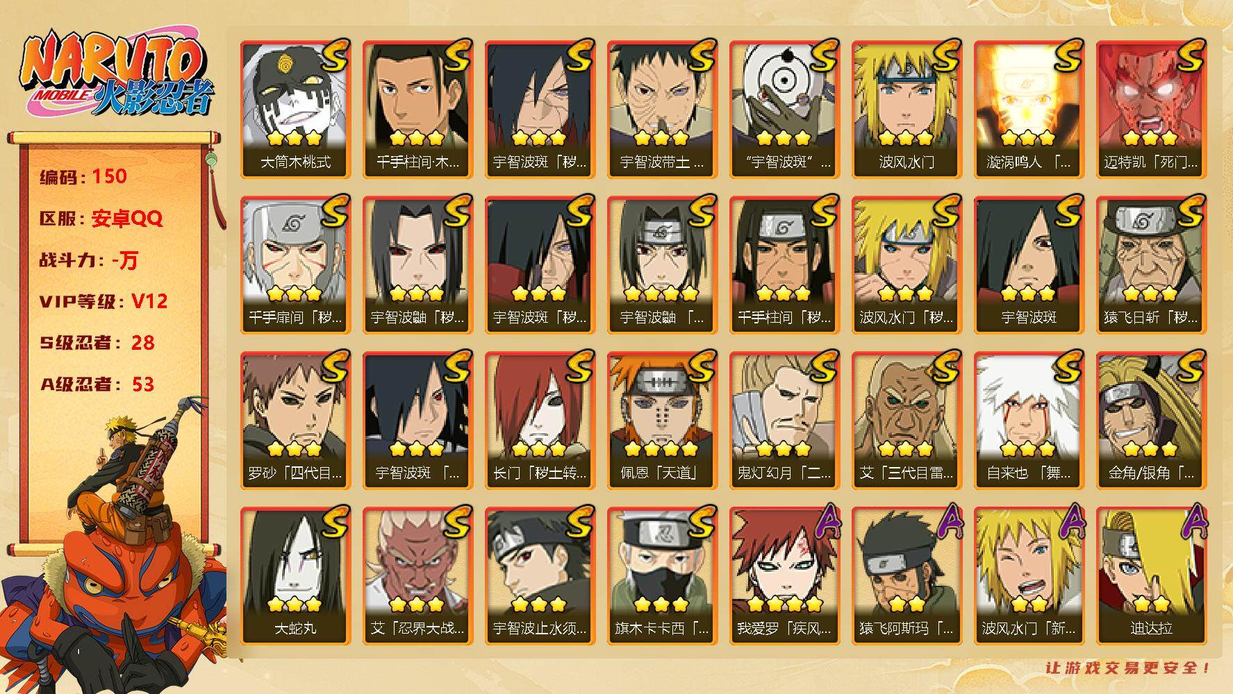 【S忍者4 A忍者15 通灵9 仙人兜】【安卓Q-924区-142级-V3-23