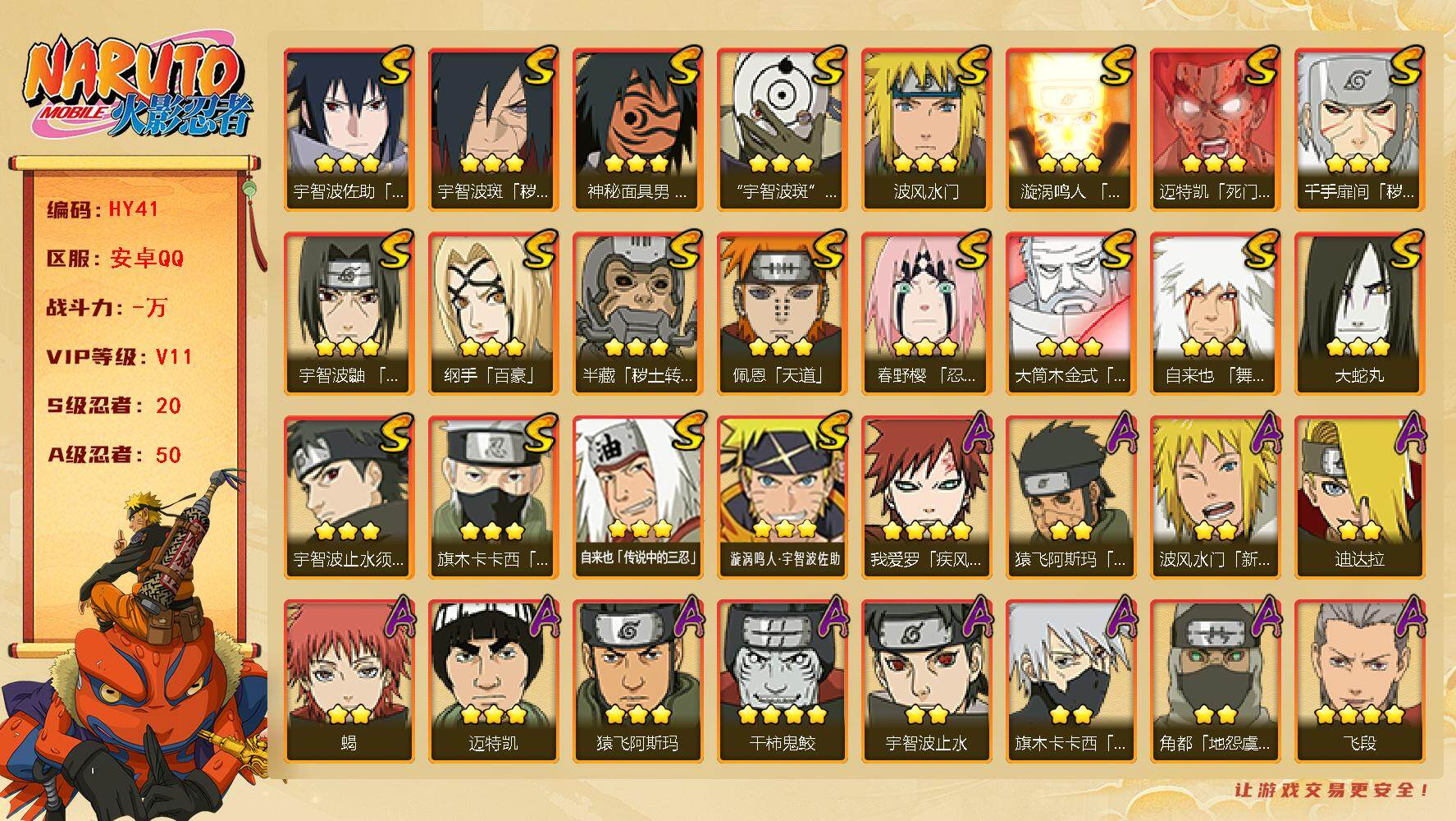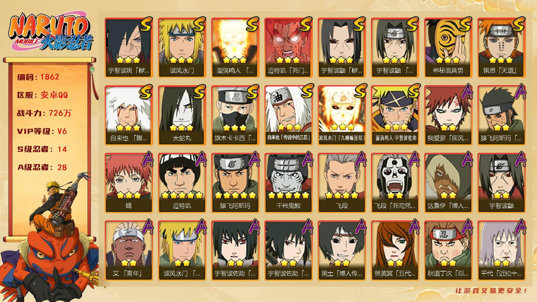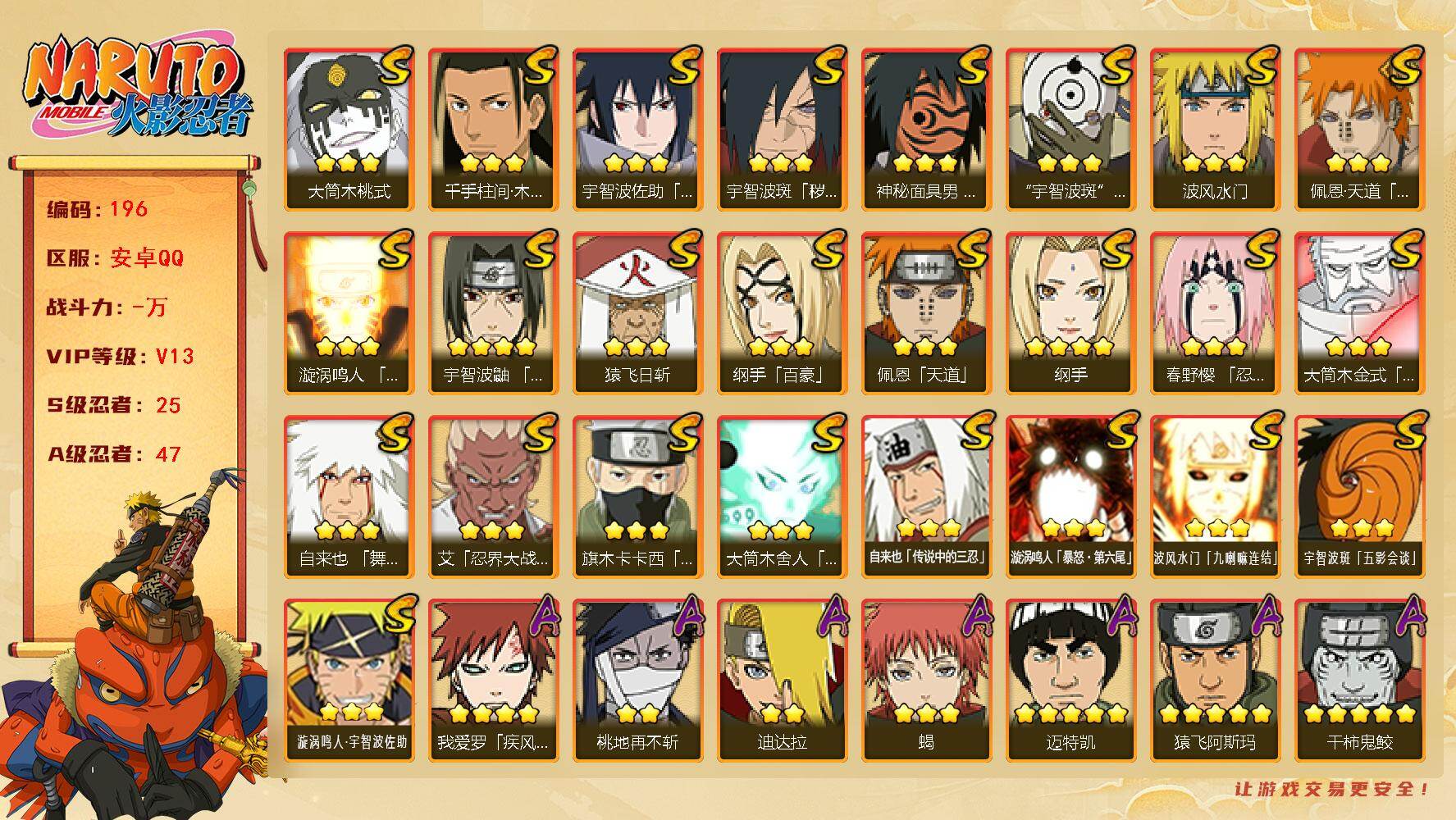【S忍者4 A忍者15 通灵9 仙人兜】【安卓Q-924区-142级-V3-23