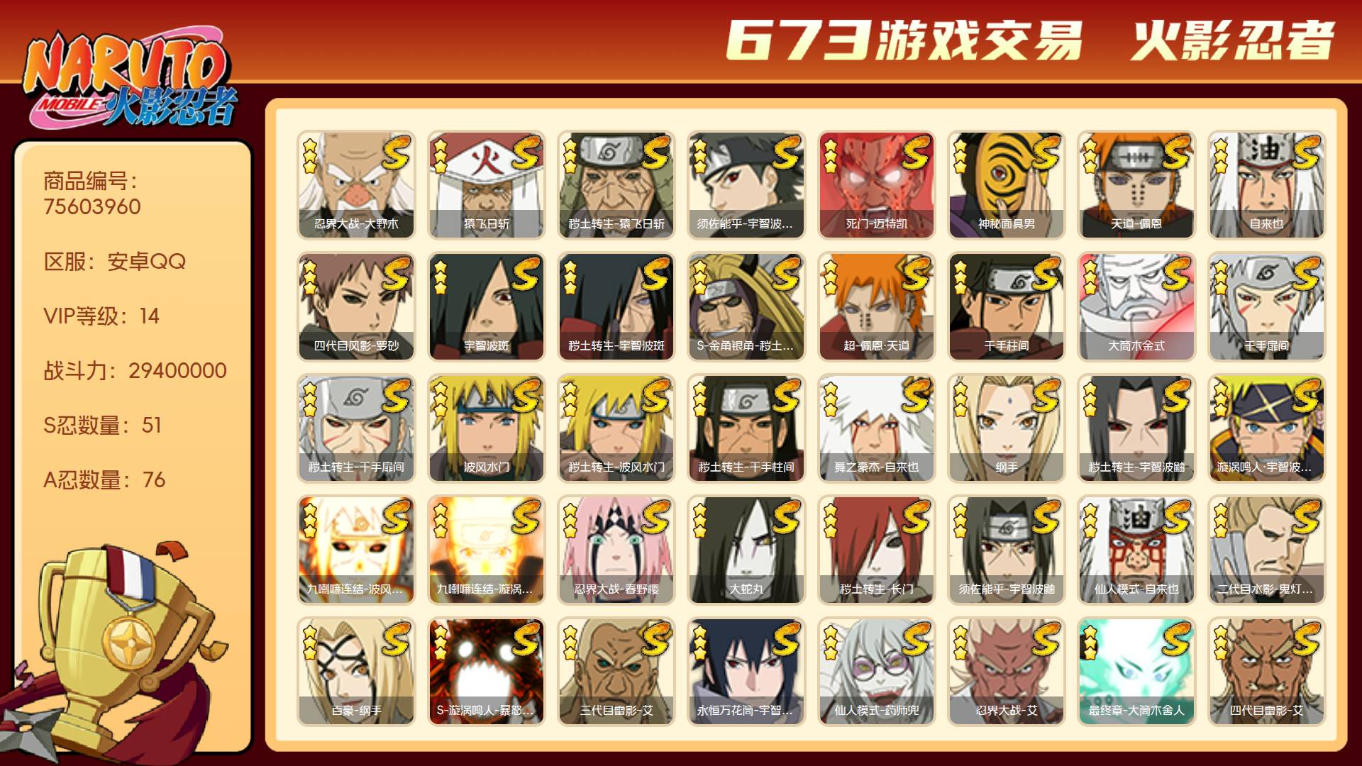 角色等级166 金币64000 战斗力29400000 S忍51 A忍76 5星S忍者18 14 段位超影