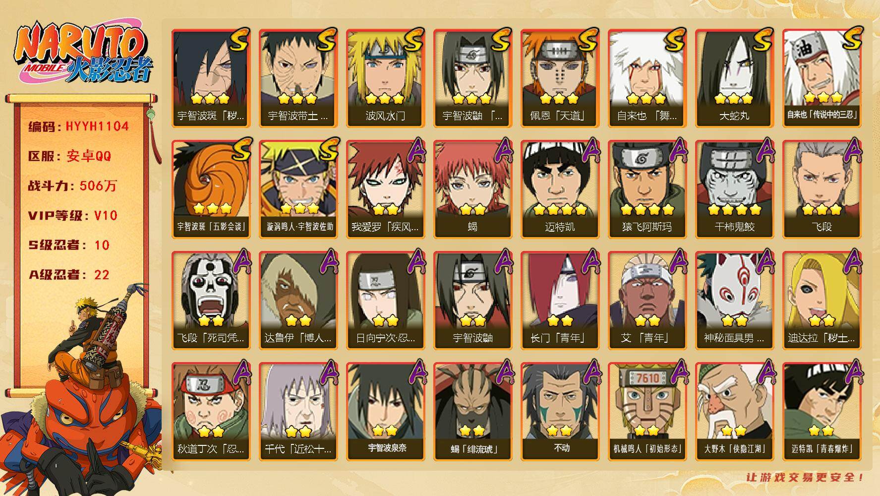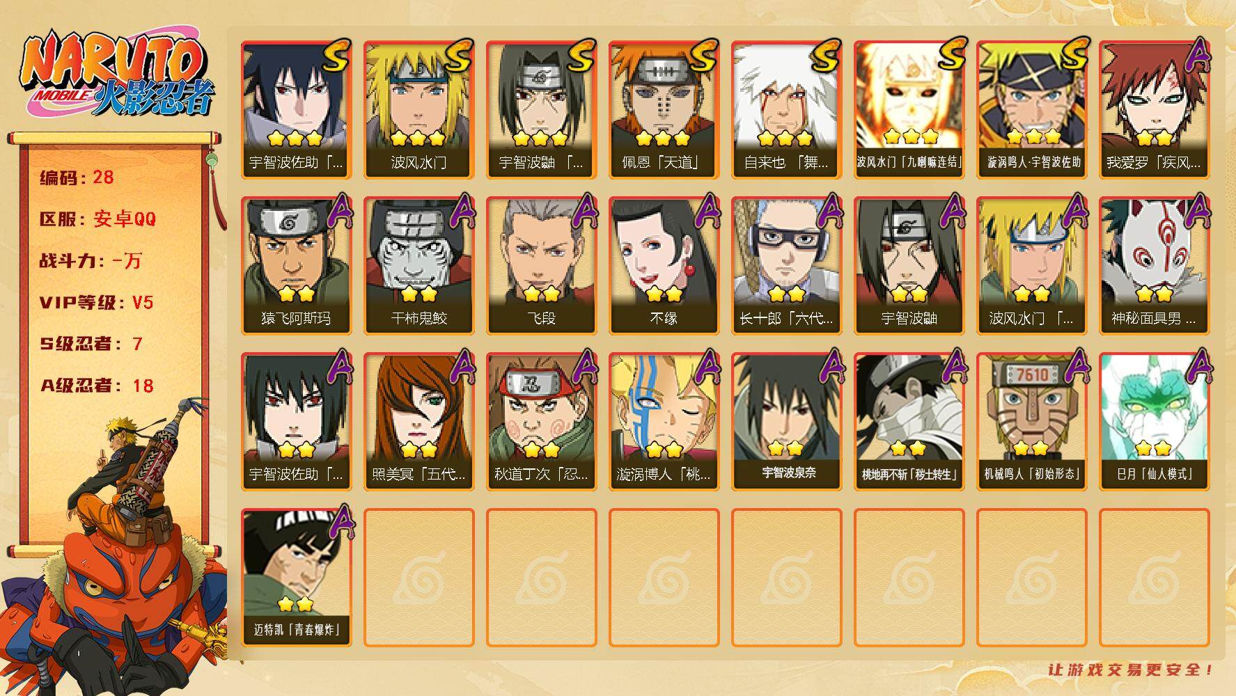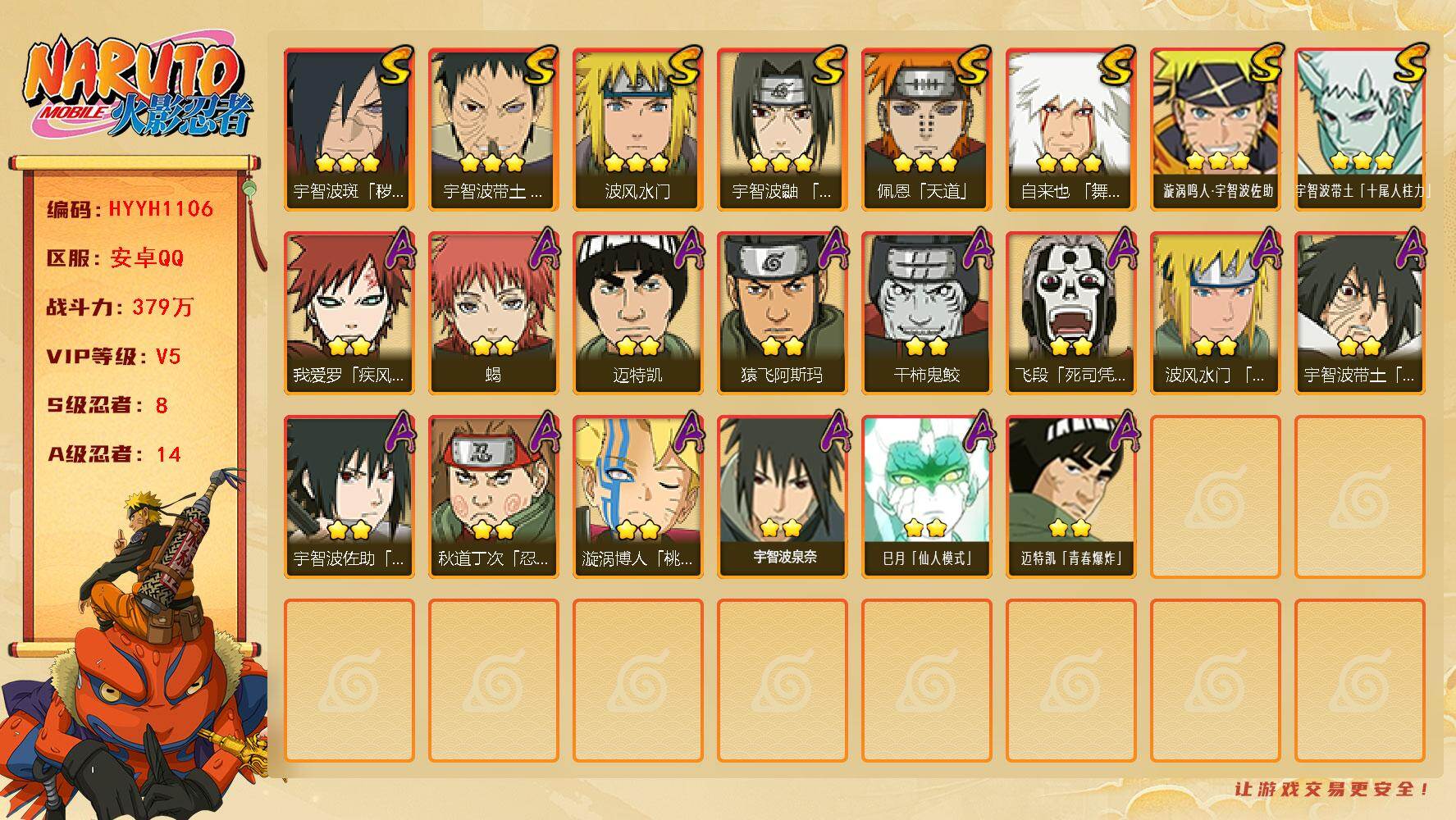 V5/战力379W/S忍8/A忍14/舞之豪杰-自来也/疾风传-我爱罗