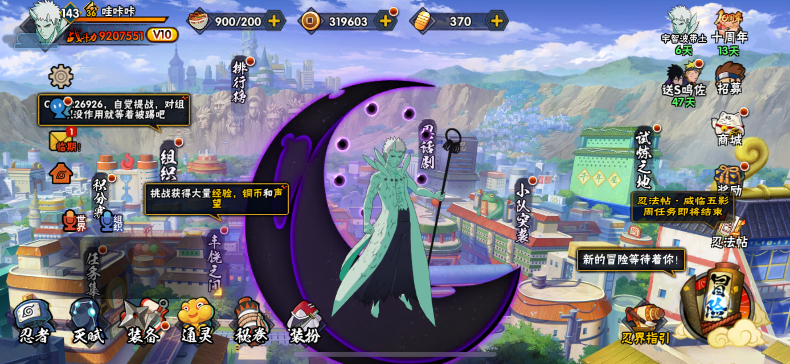 高贵自抽号4.9w金币+104抽高招,十尾带土,决斗场手册也还没做,永久25元忍法帖通灵一尾v3