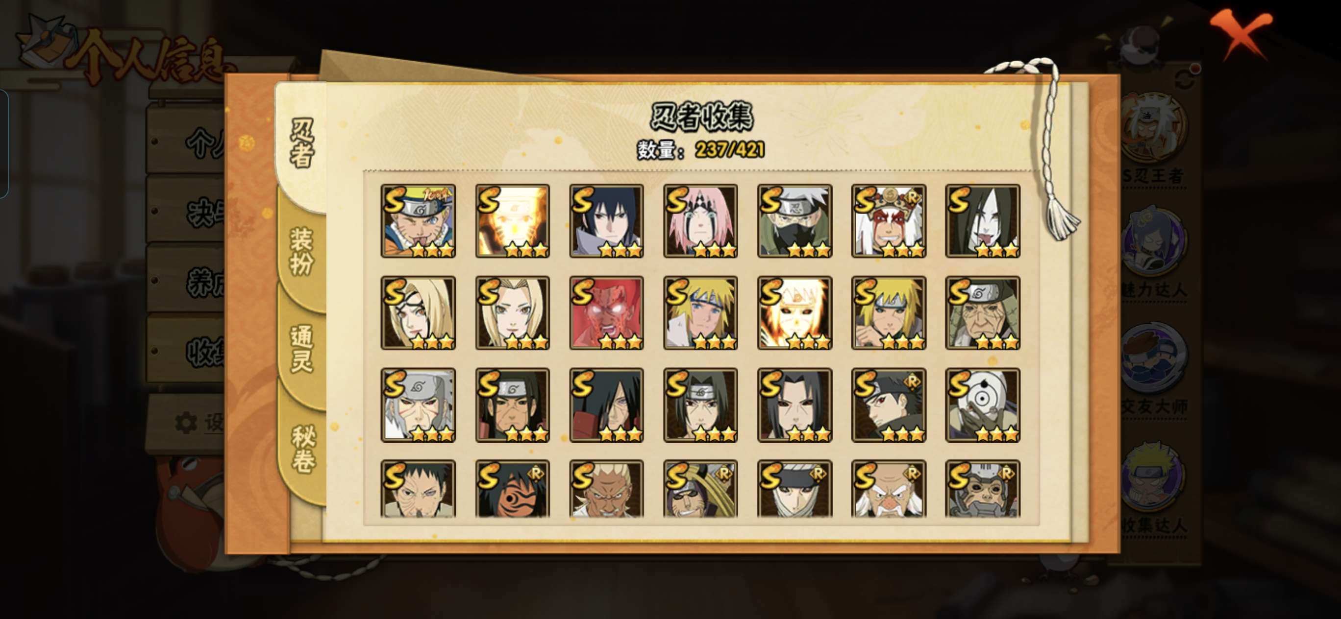 性价比成品号,忍者全面,稀有秘卷,多忍法帖S-这个QQ有会员,然后老三代有80片