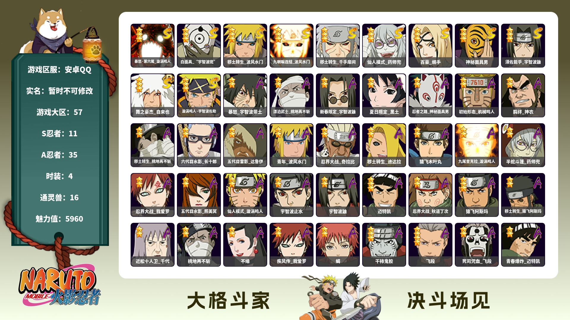 安卓qq-双区史诗级强者号-一个区v9一个v7-【S级忍者