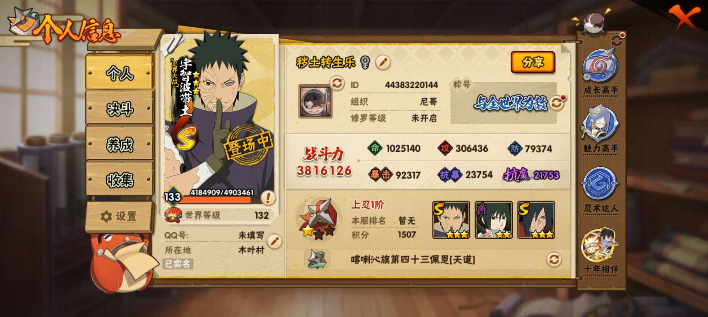 (可转苹果)忍法帖已开!1606W战力白破超创斑创柱44S+