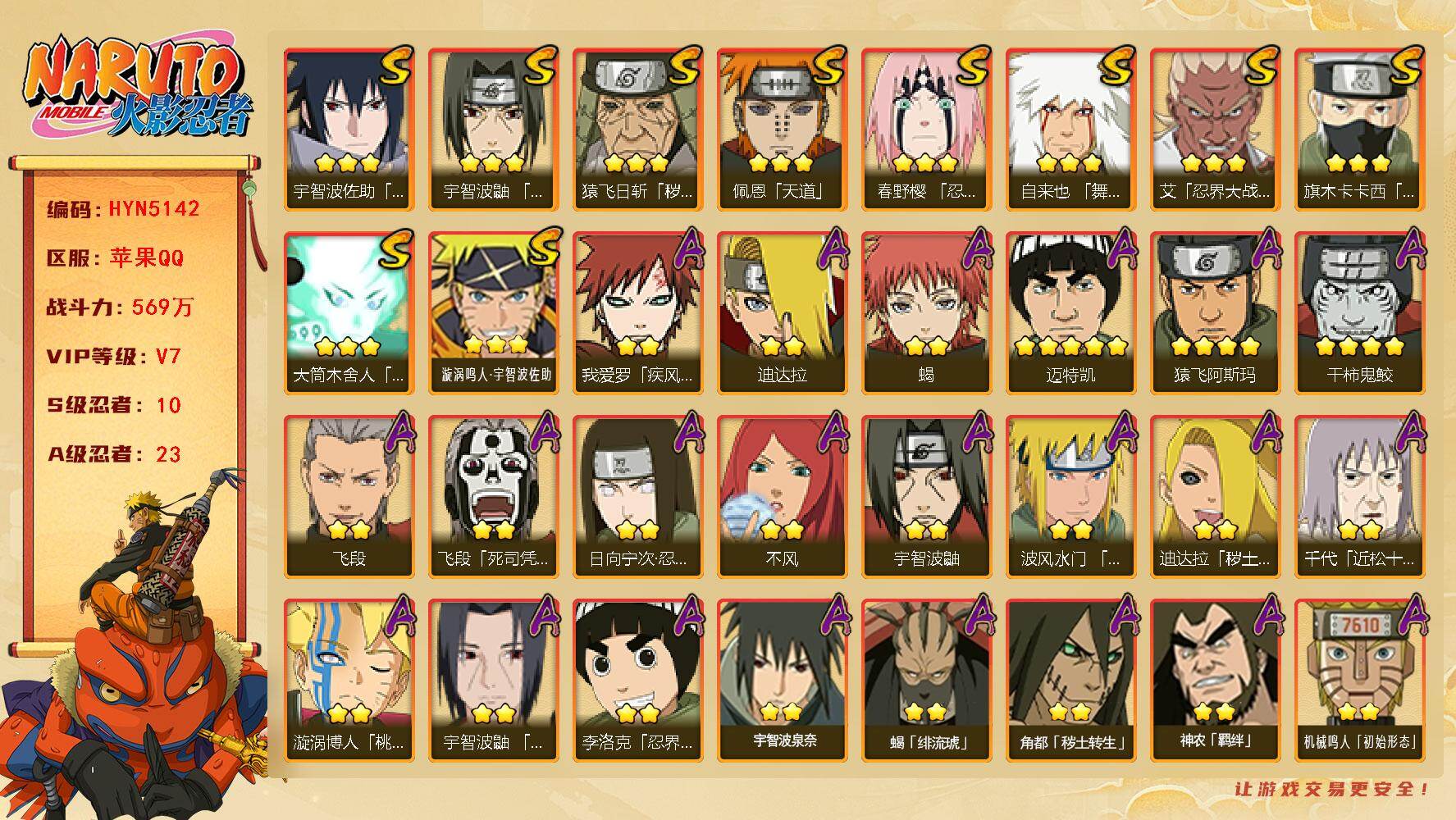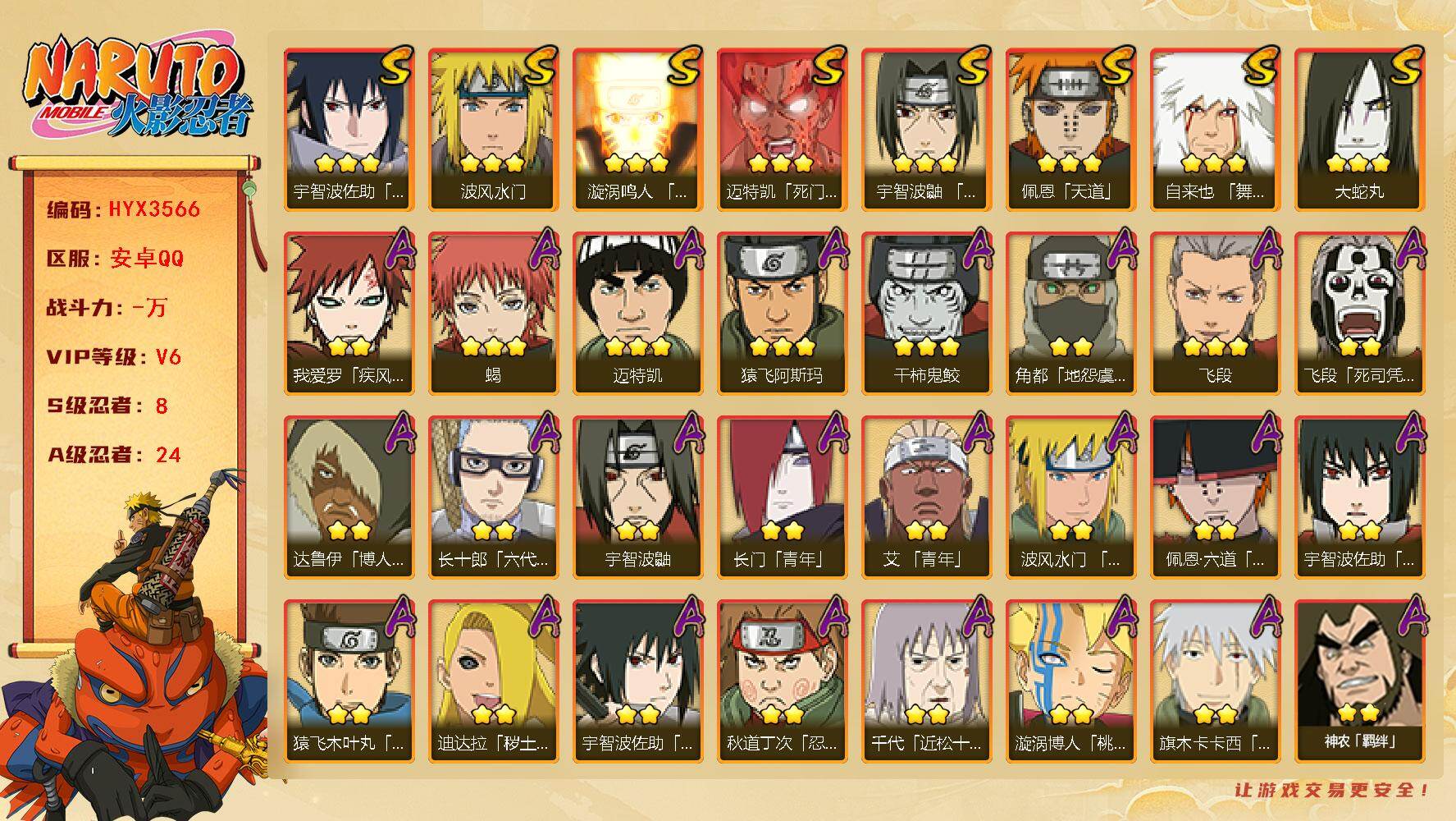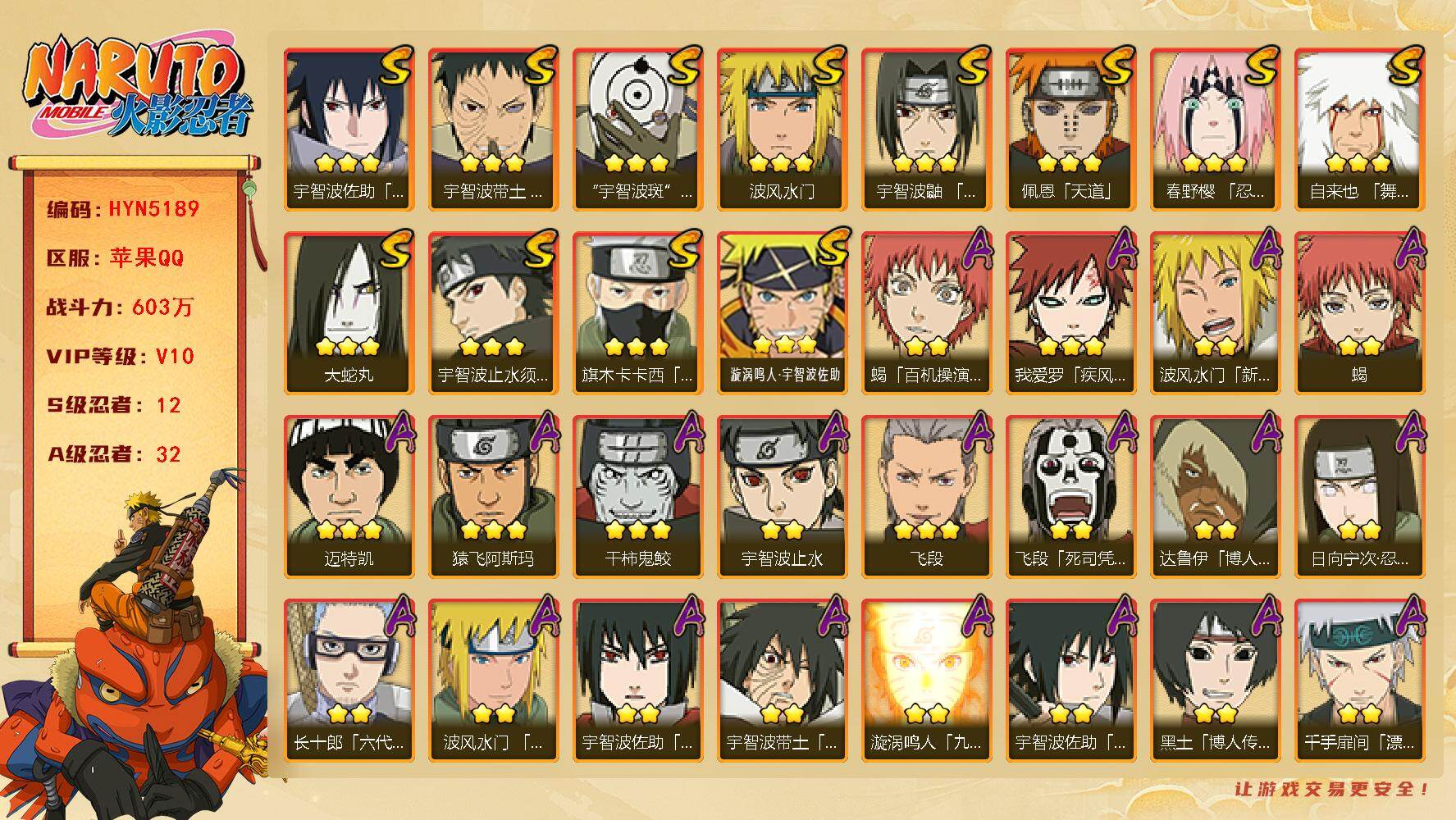 (可转苹果)243w战力秽土鼬3s爱情哥12a战力243账号