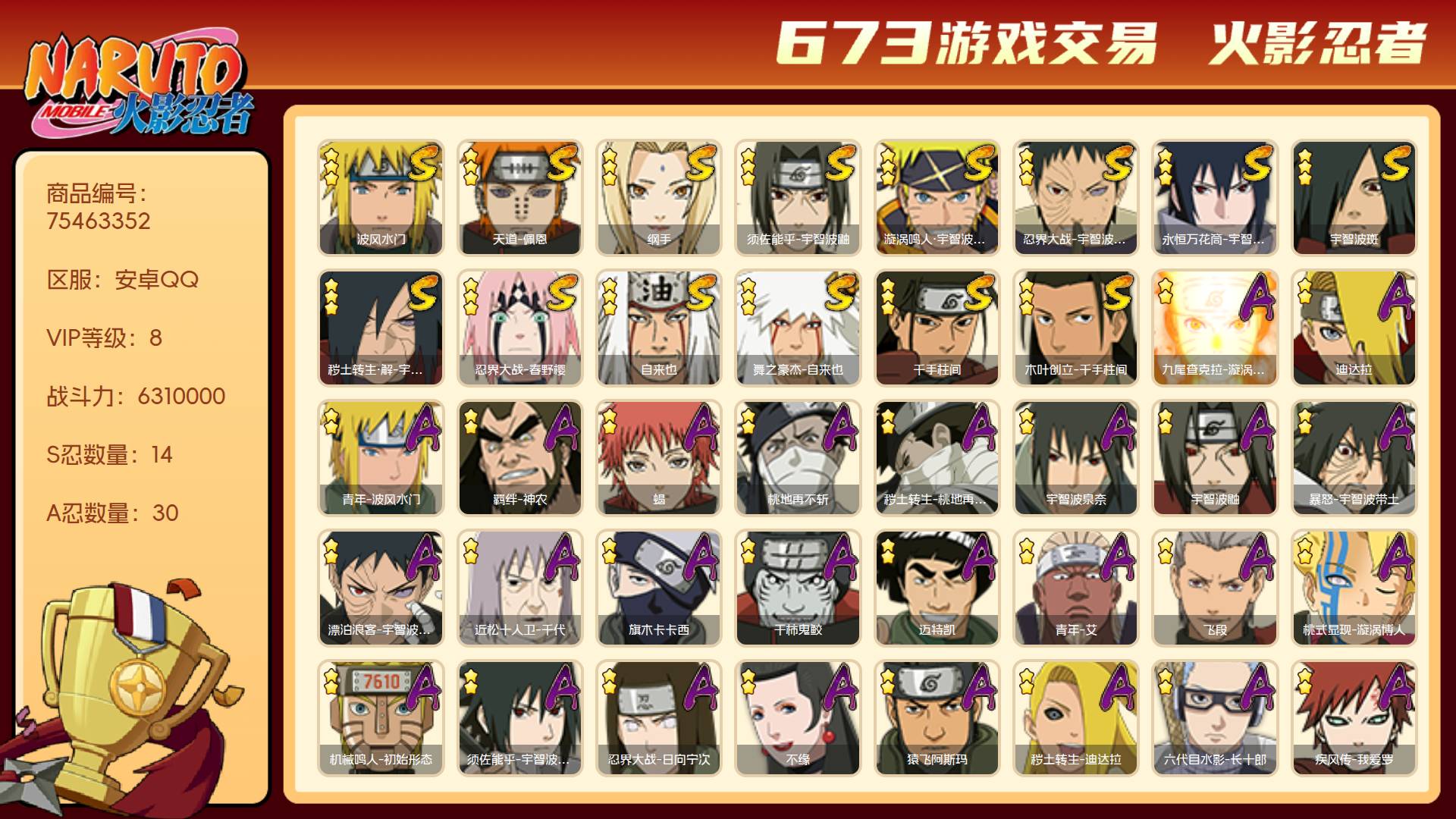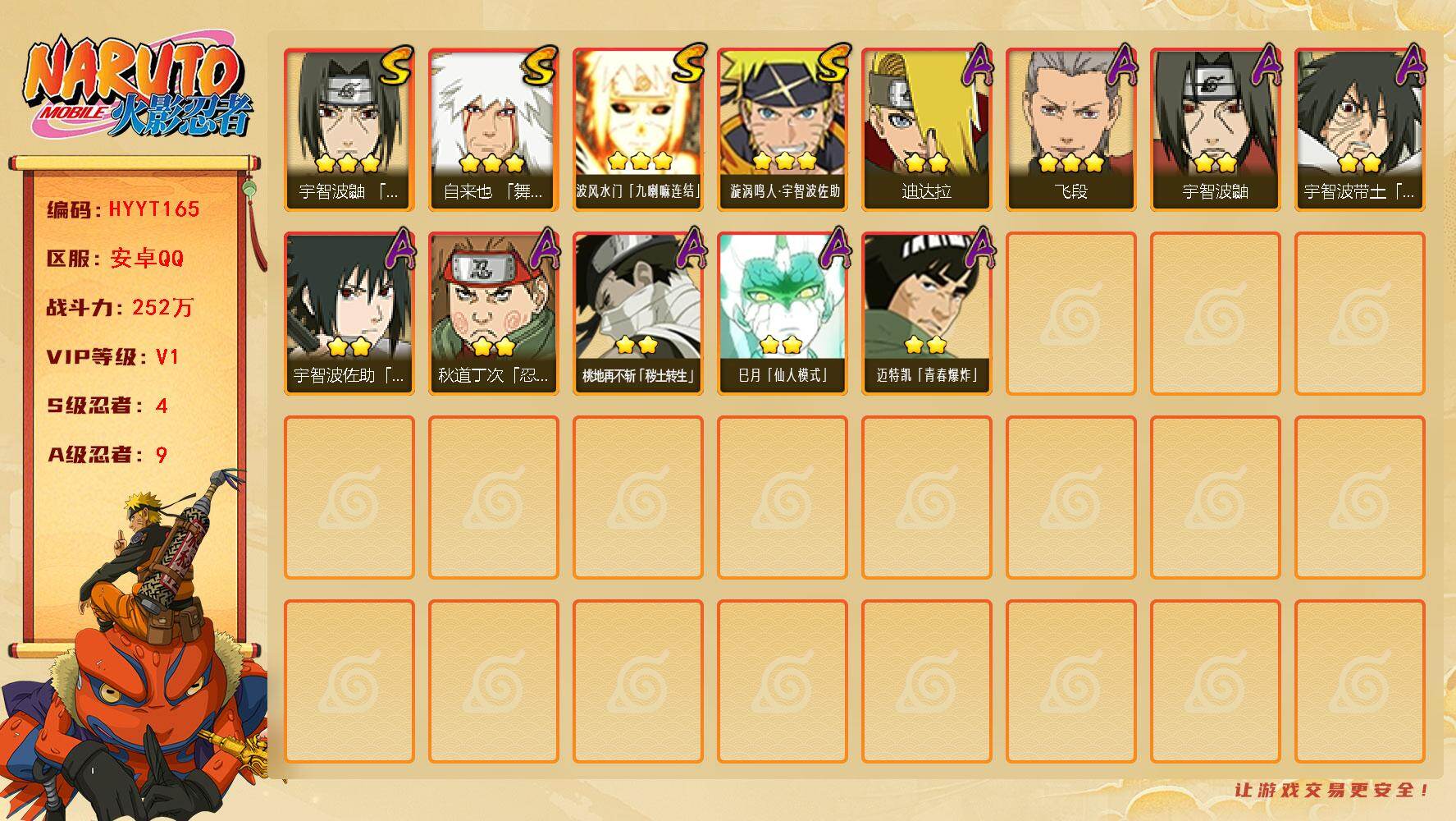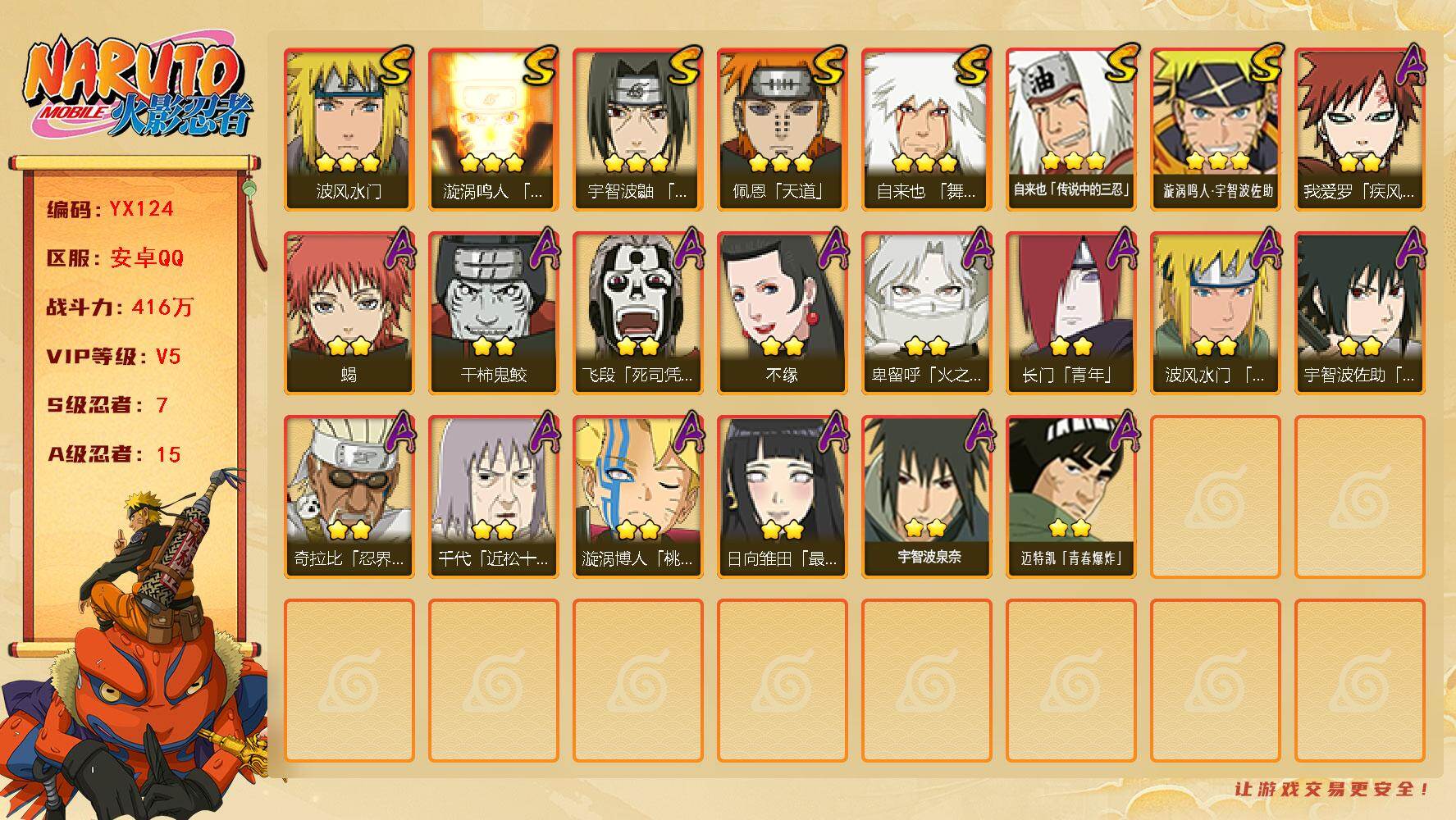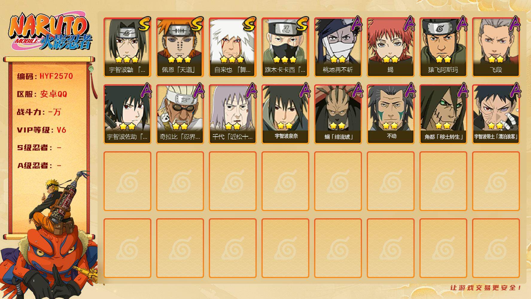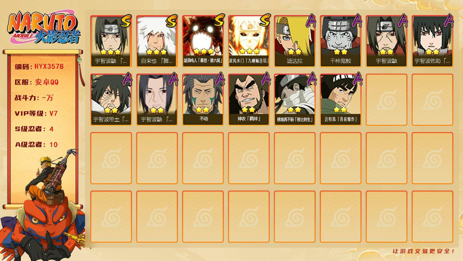 安卓qq-可二次-新手入坑首选账号-嘎嘎香-S忍者数:12