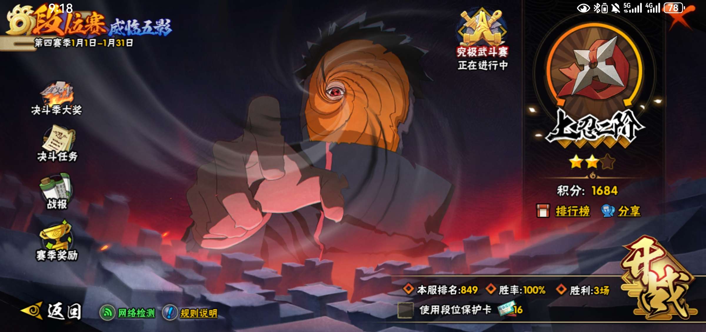 V6/战力171W/S忍2/A忍7/舞之豪杰-自来也/2星宇智波带土「漂泊浪客」