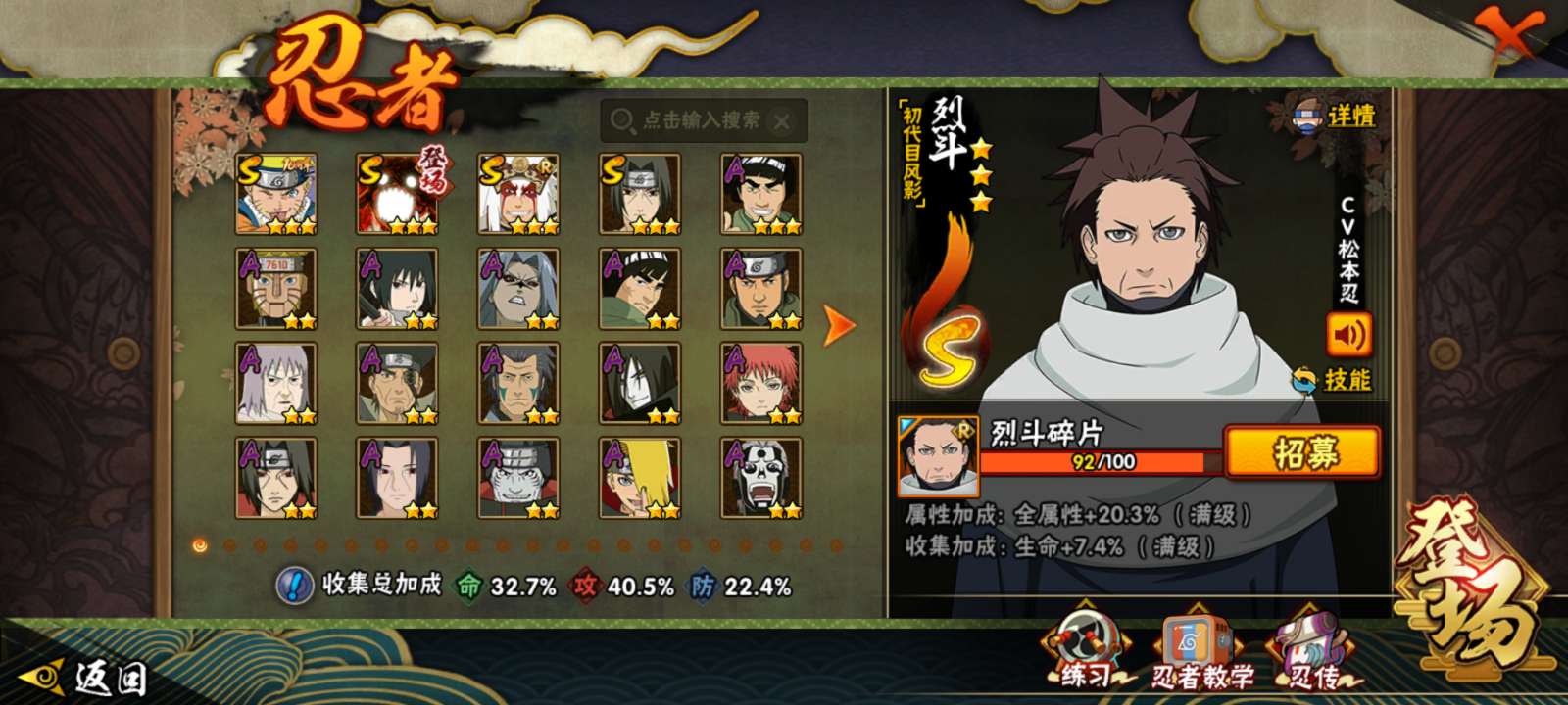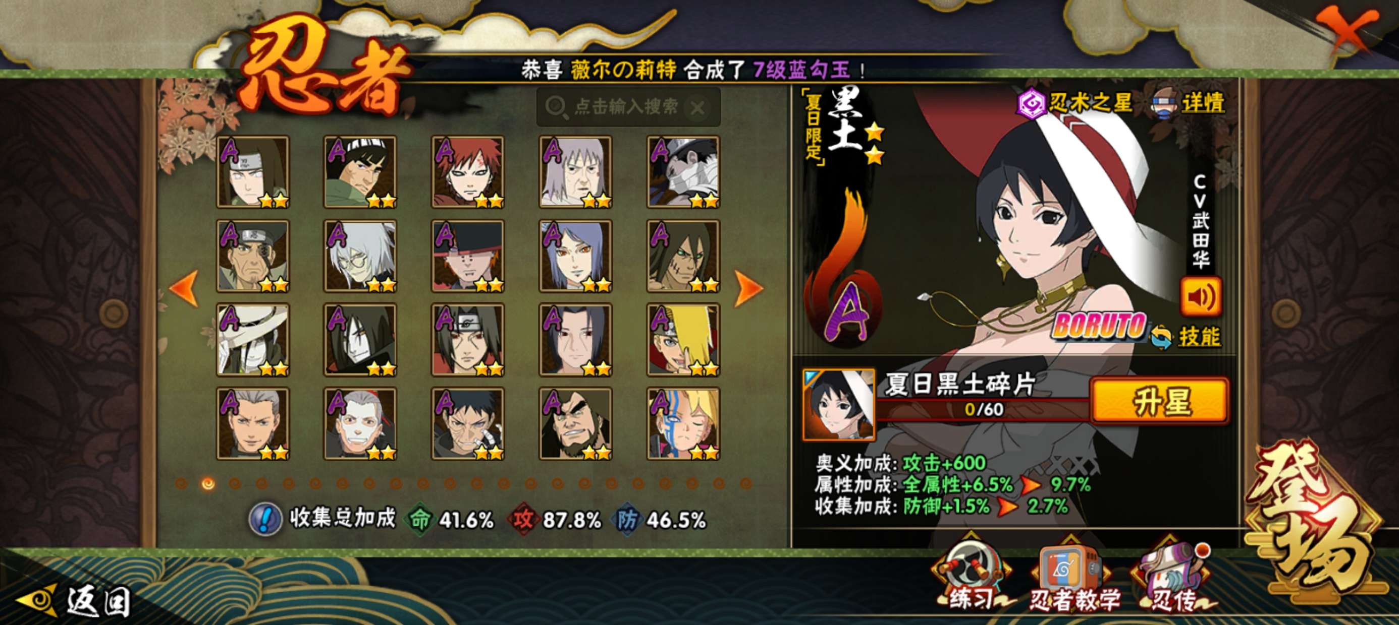 角色等级140 金币2149 战斗力6310000 S忍14 A忍30 5星S忍者10 8 段位暗部