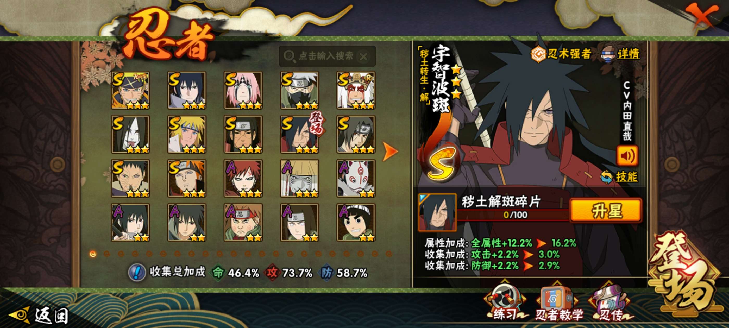V14 2370万战力 49S级忍者数-72A级忍者数 有熊猫 有648奥义图