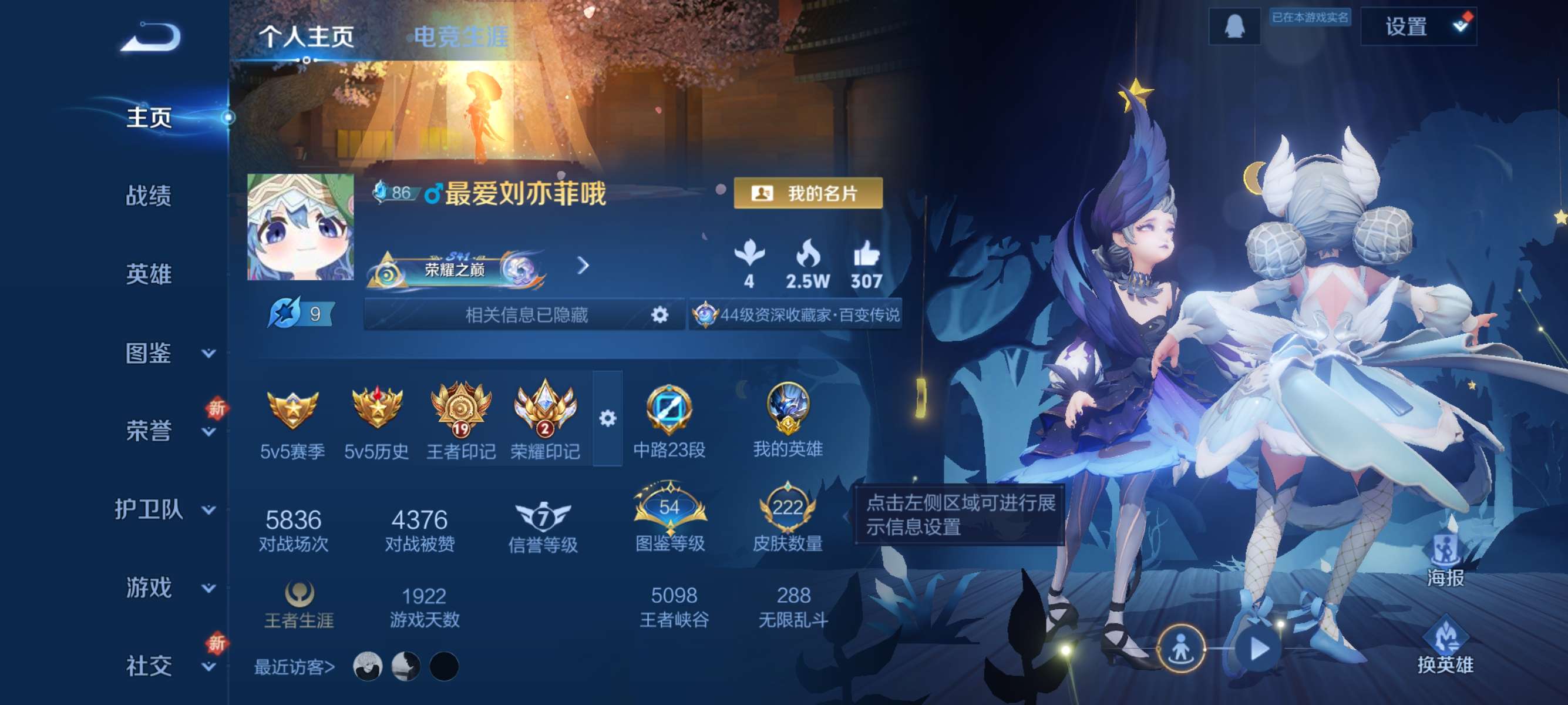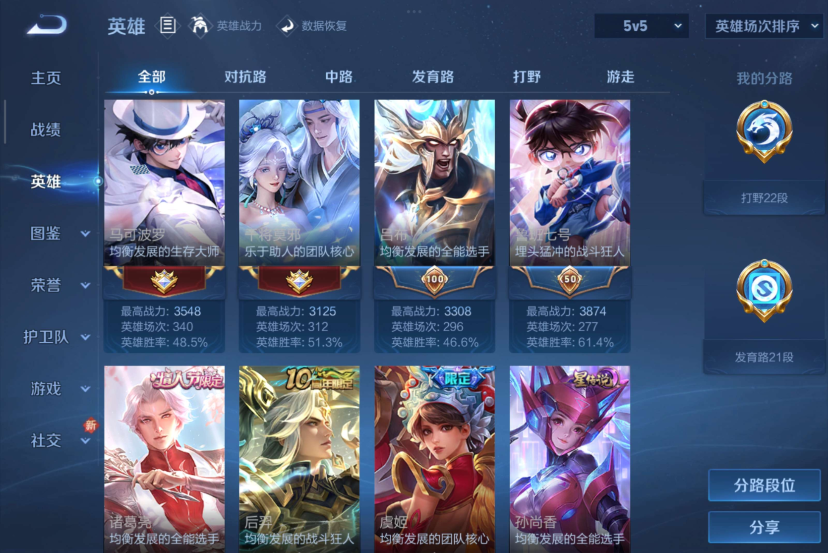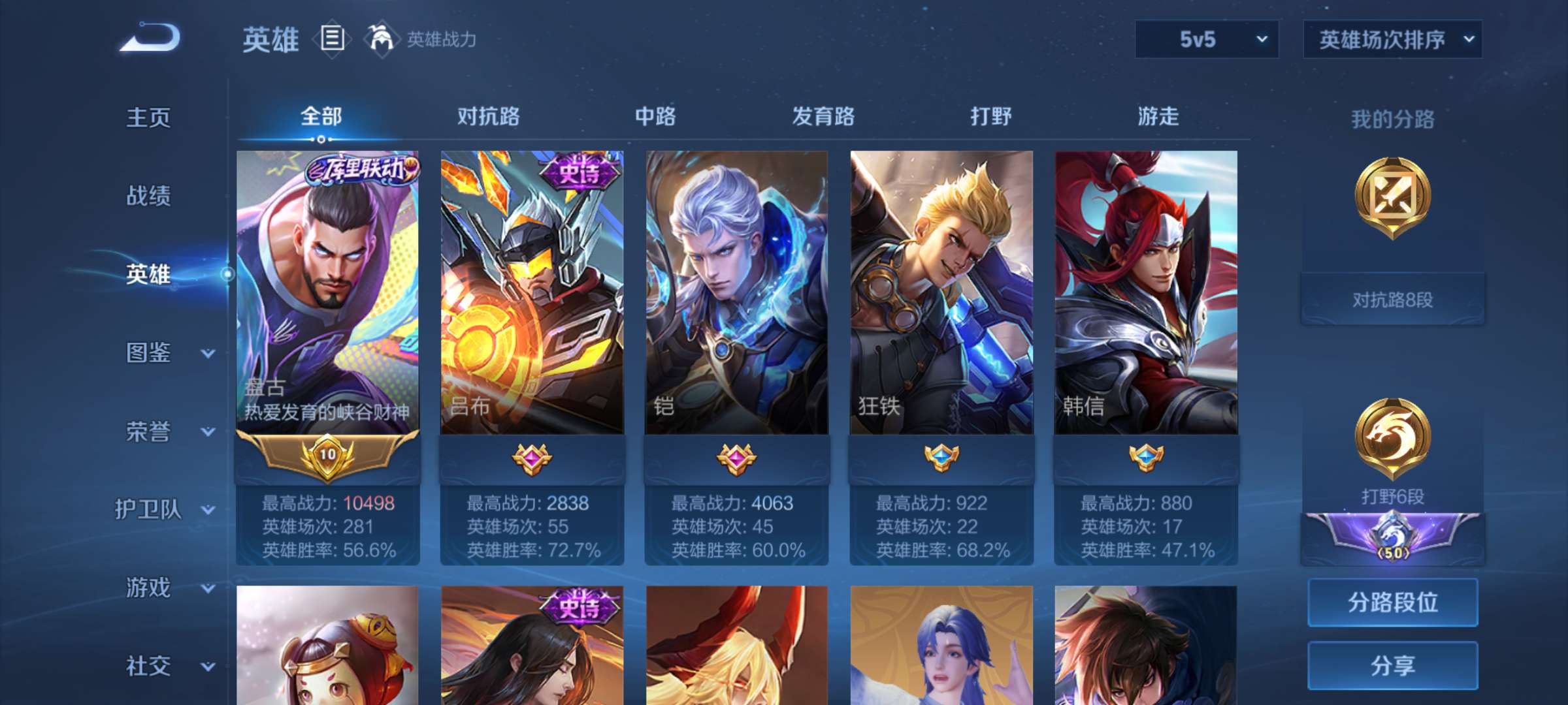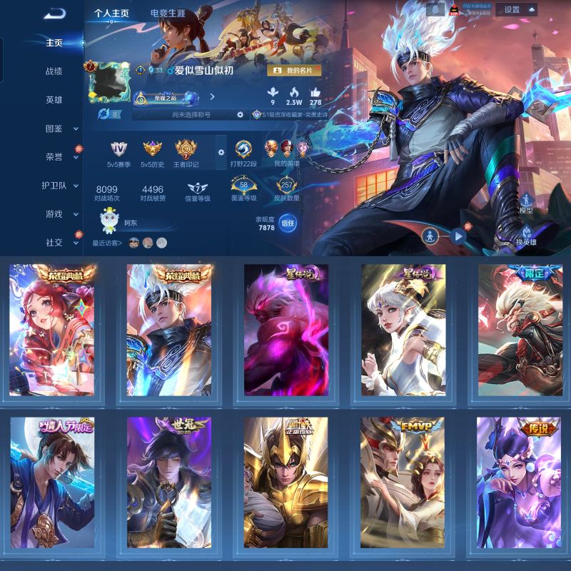 实名: 可修改 贵族等级: V4 英雄数: 85 皮肤数: 27 传说皮: 灼