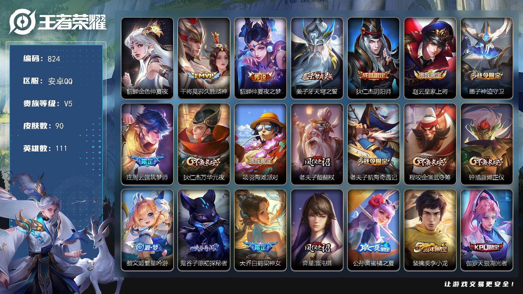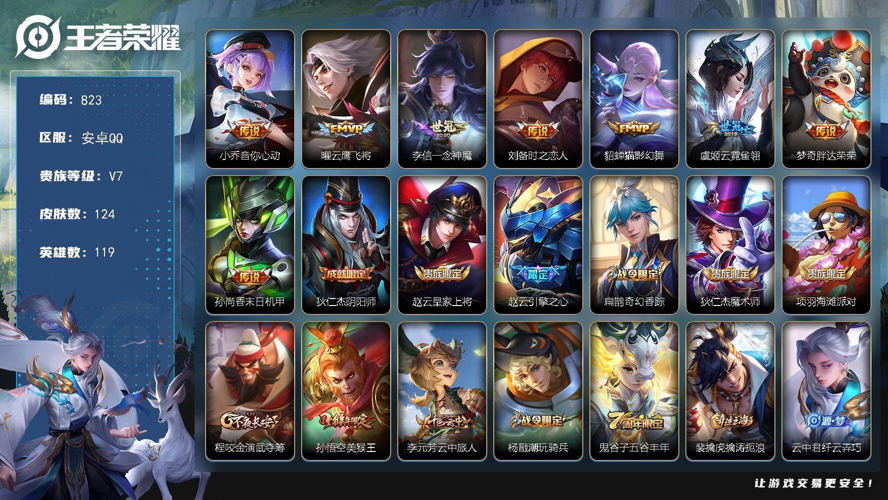 安卓QQ-2传说-94皮肤-125英雄-荣耀王者-王者荣耀。自己的号。