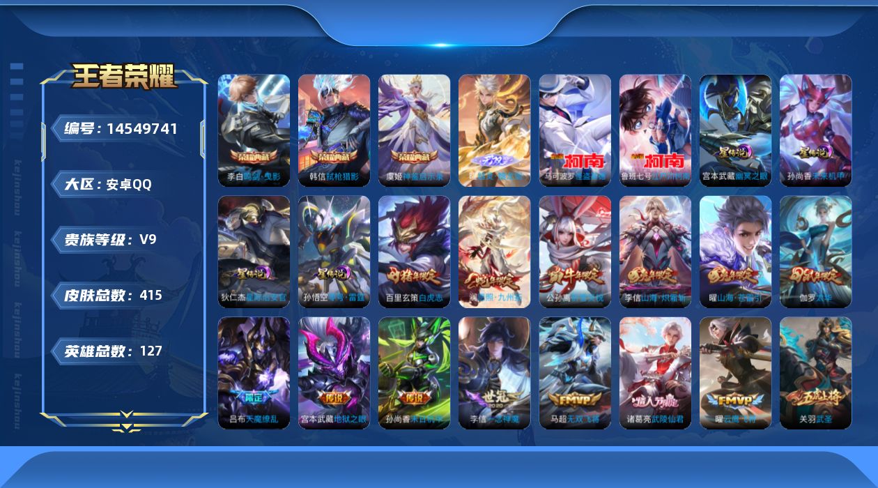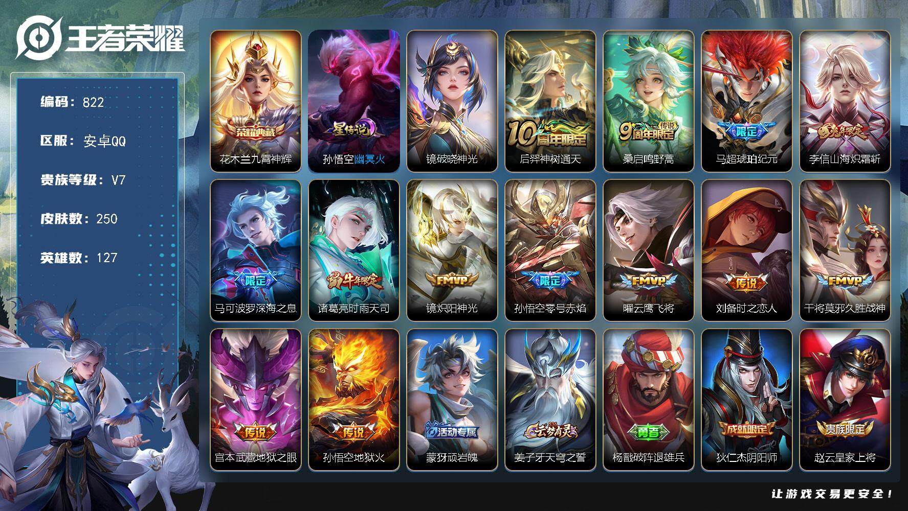 安卓Q-V6-最强王者段位-127英雄-250皮肤-1典藏皮肤-13传说-67