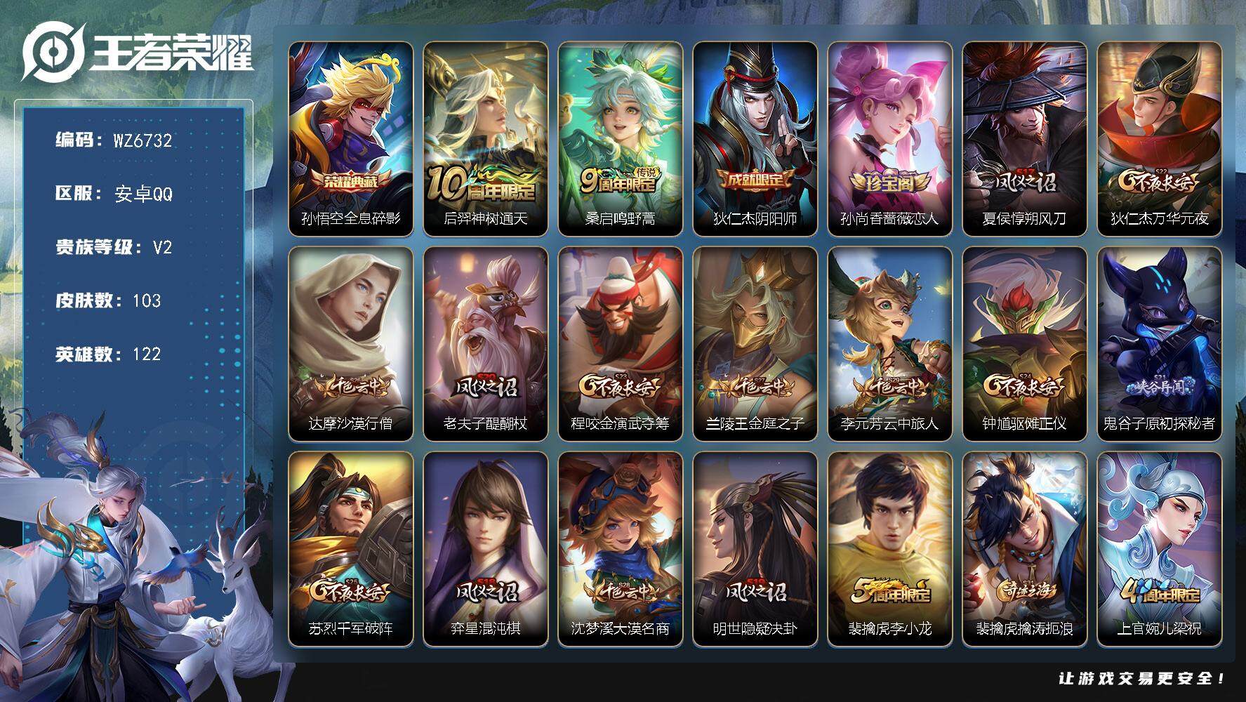 安卓Q-V2-最强王者段位-122英雄-103皮肤-1典藏皮肤-2传说-19史