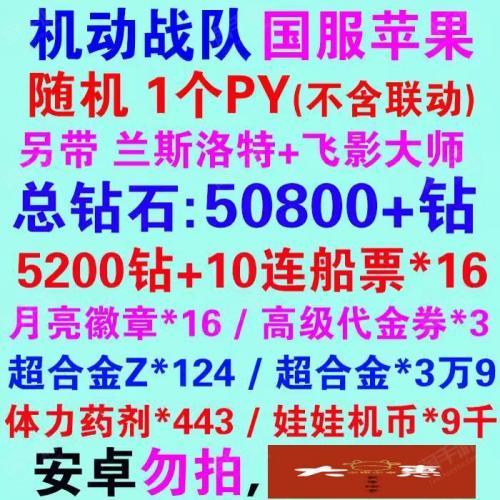 安卓官服36000钻石+7张船票+170高抽券480超合金