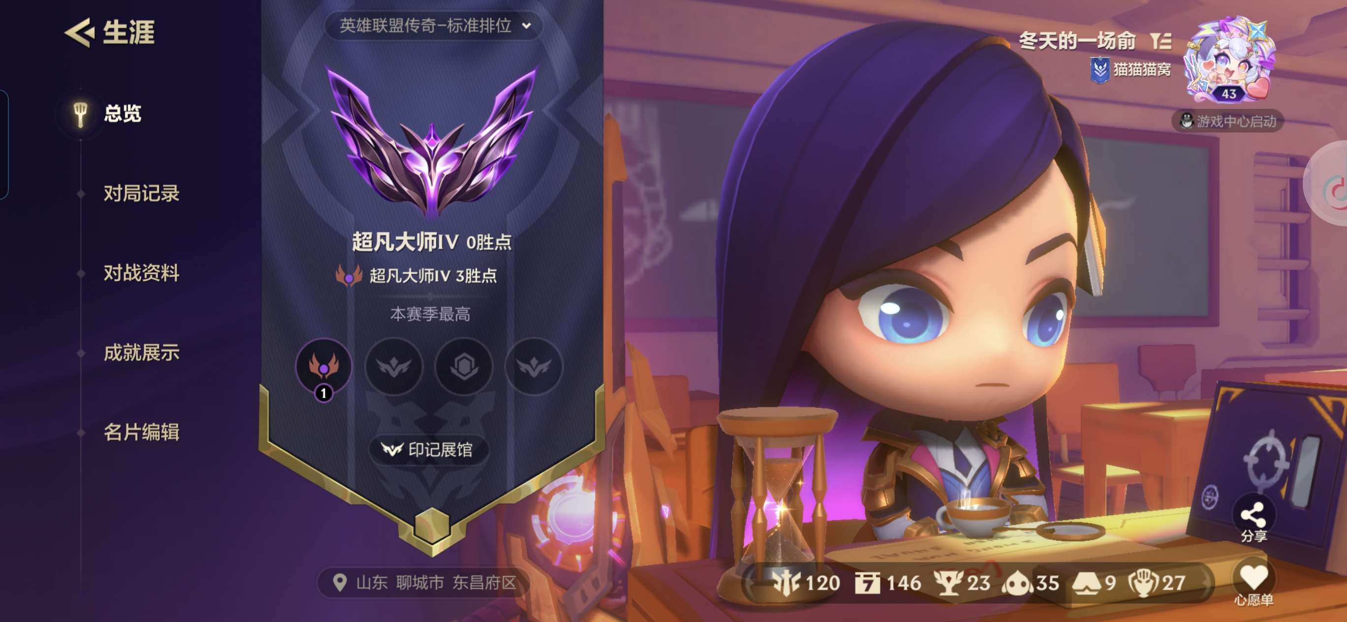 】段位:大师,神话小小英雄数3,小小英雄总数4,棋盘数量8,神话级小小英雄:战斗学院小小凯特琳