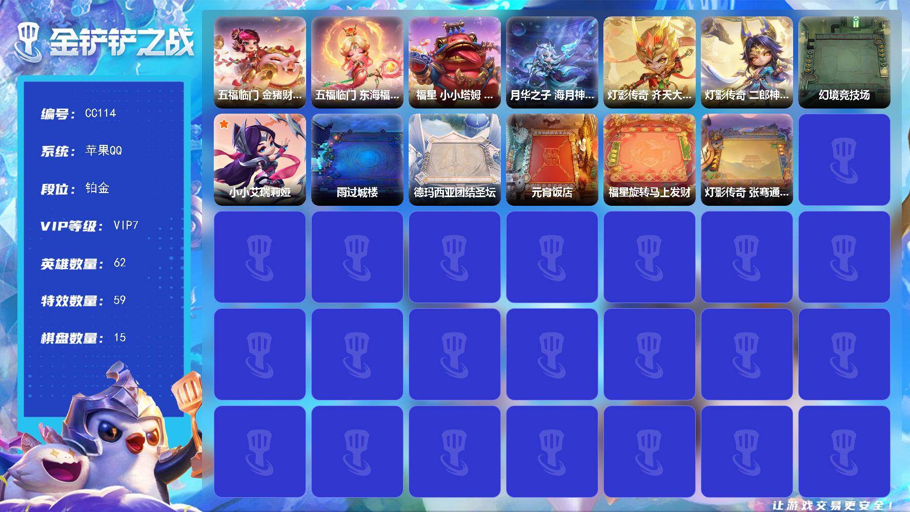 [17582961]VIP7 5神话英雄 15棋盘 30特效 璀璨钻石 84级