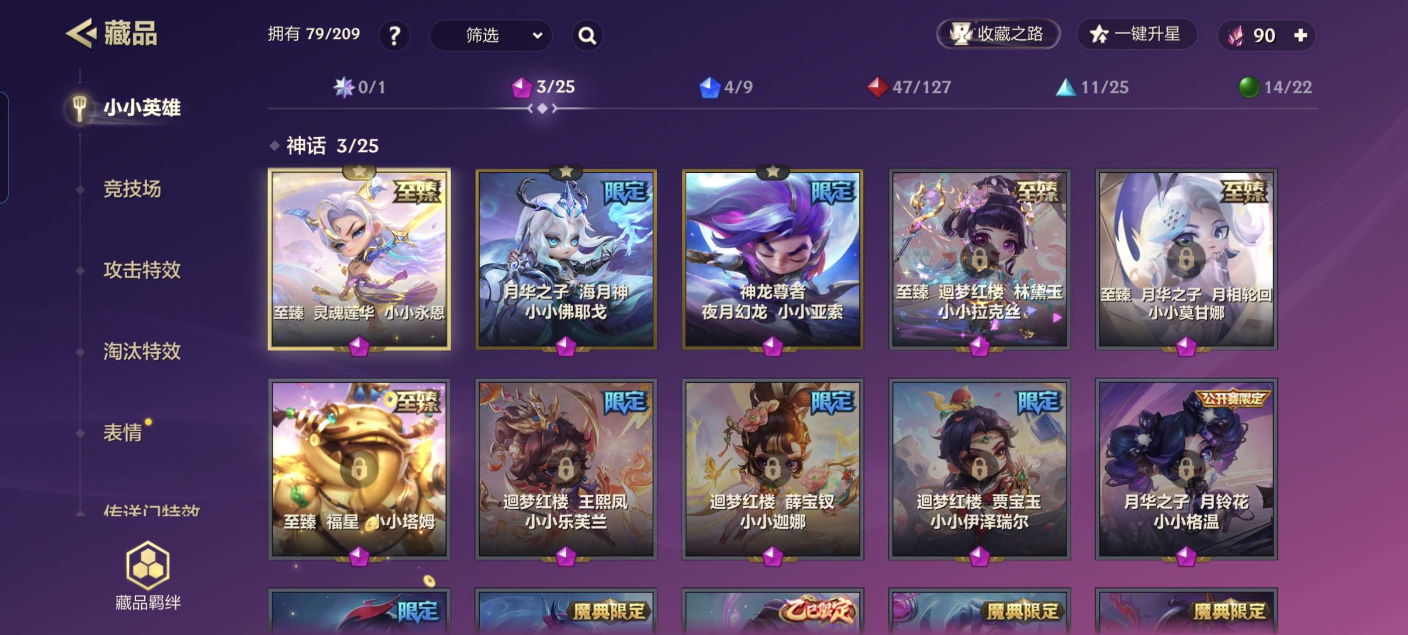 DD48安Q(可二次)金铲铲 125小小英雄 78传说 3神话-3星寻龙踏雪墨宝 灵魂莲华小小瑟提 都魂觉醒小小拉克丝 3神话攻击特效 5限定 20史诗 13竞技场 攻击特效50 点券272