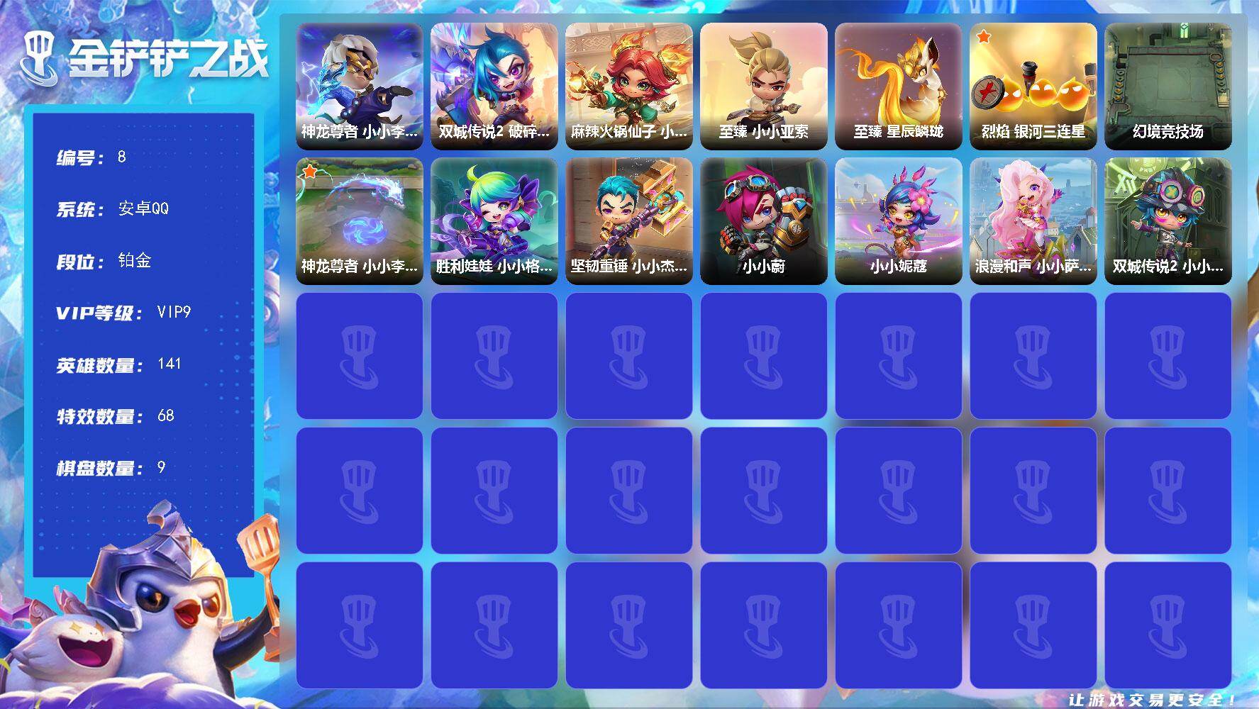 VIP8 7神话英雄 10棋盘 75特效 铂金 214级