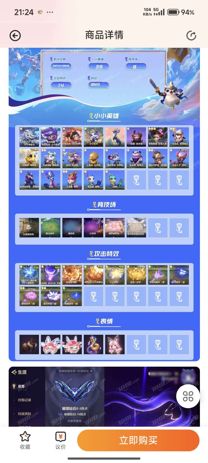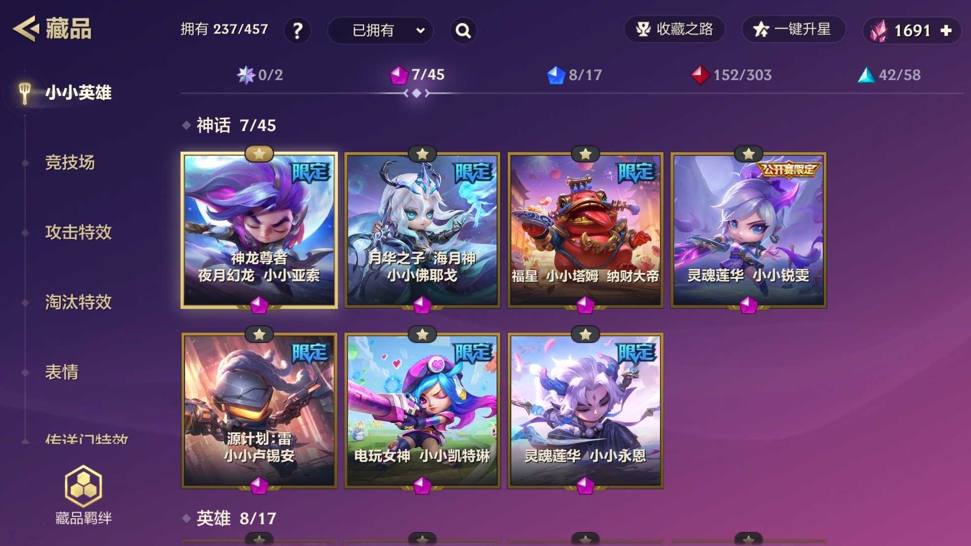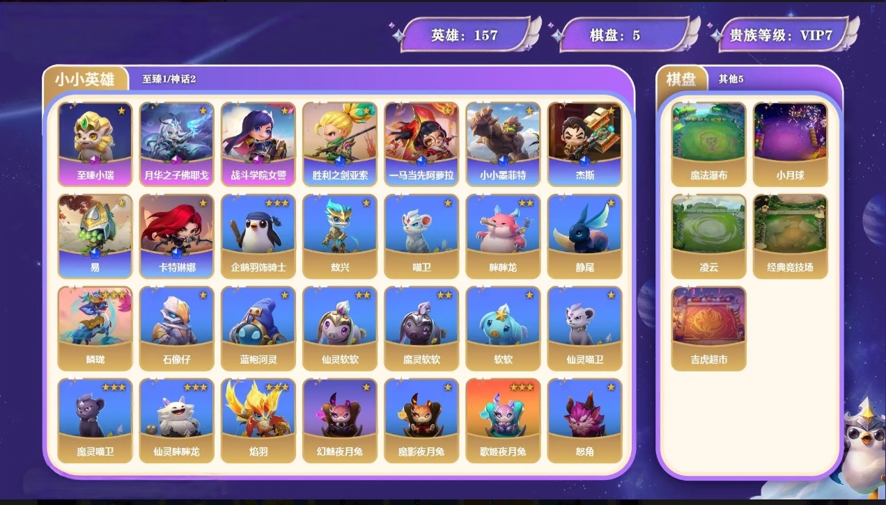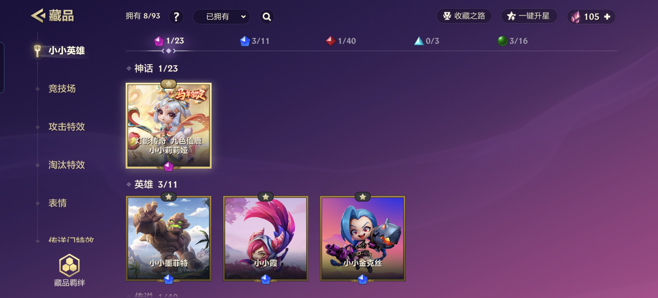 一个神话小小英雄,三个英雄级小小英雄,两个传说竞技场
