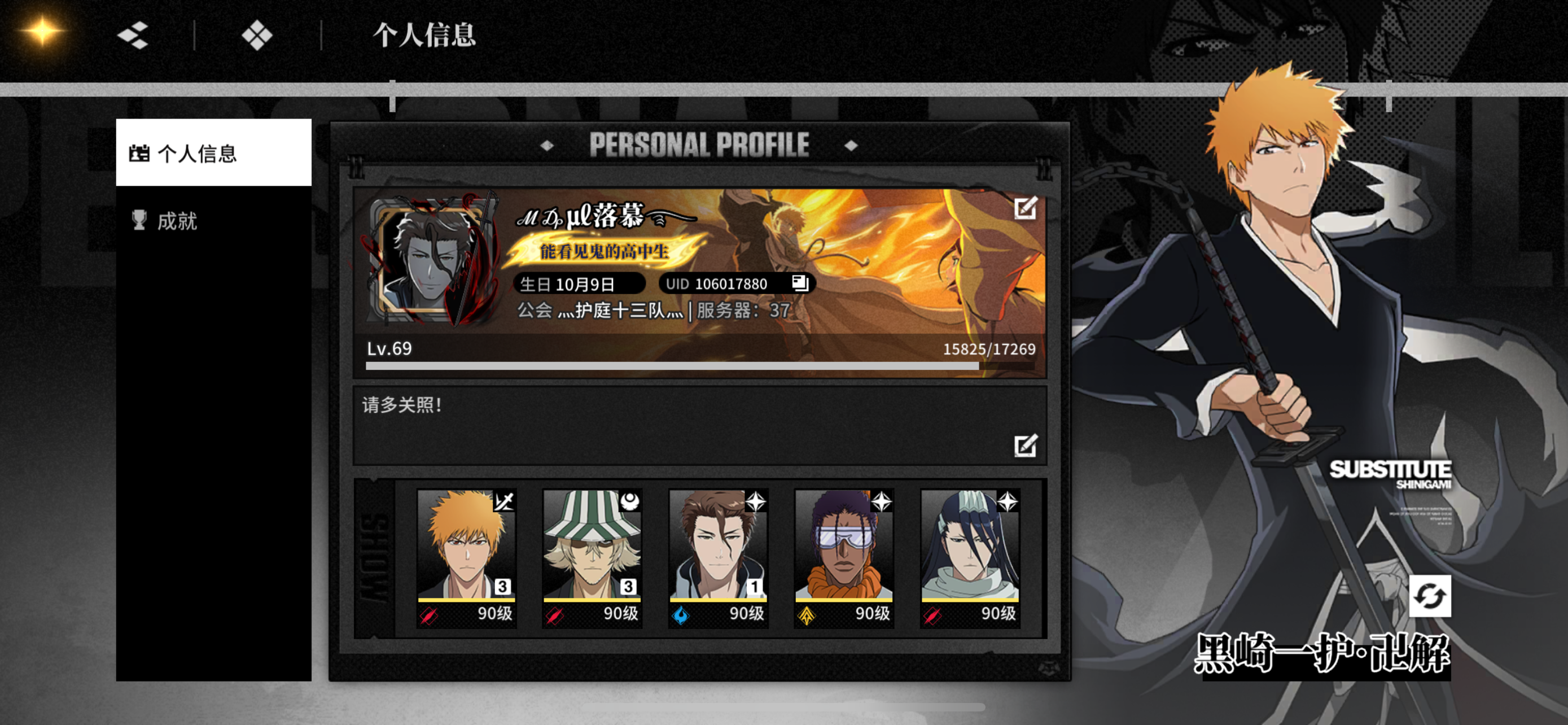 黑崎一护2+1 狮郎蓝嘁朽木1+1 喜助1+1战力均接近三万一万玉石 氪1k以上极品好