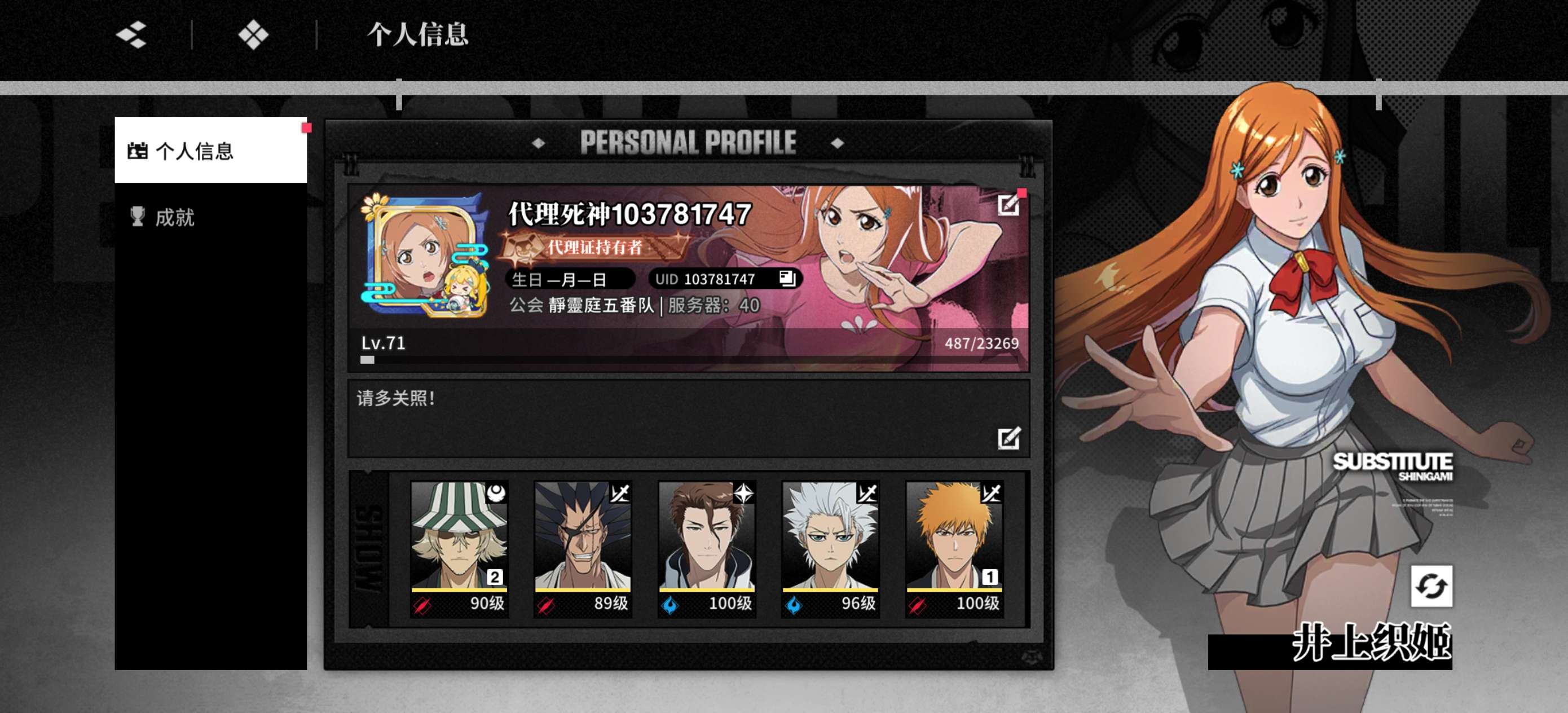 冬狮郎满命露琪亚斩队打队1命东仙1命店长专武基本都齐