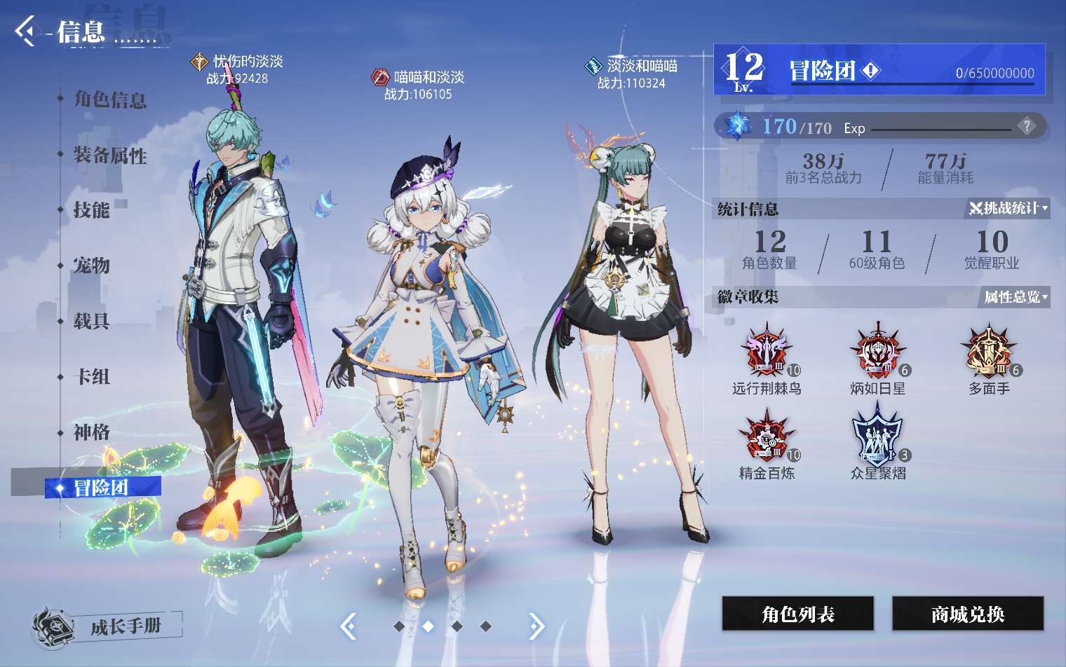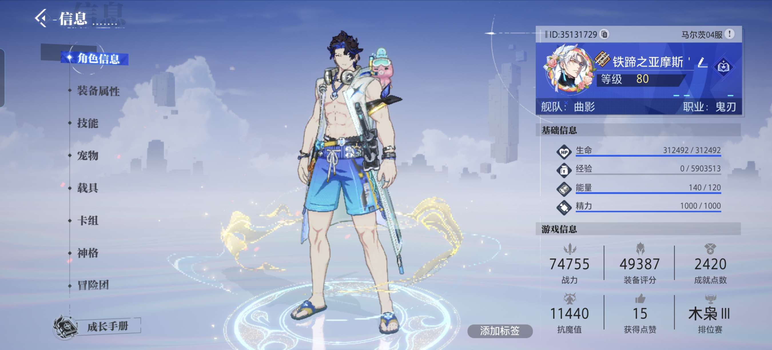 3个满级账号,战力7万4,夏日套