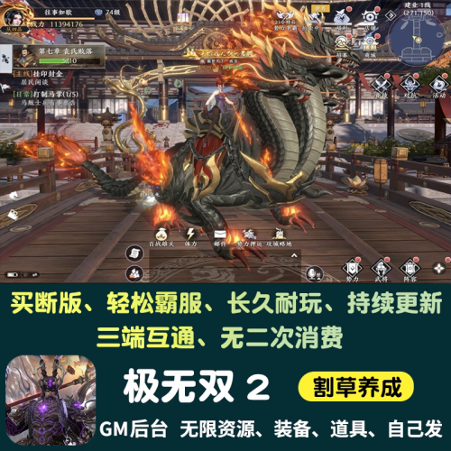 极无双2【全服通用】无限充值无限道具,无限资源自己后台随便刷,自己注册,安卓苹果都可以,无二次消费