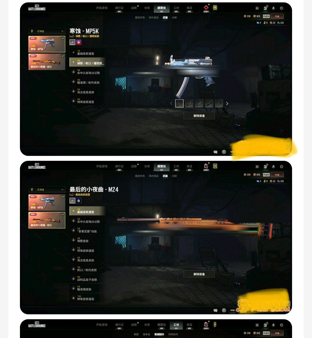 绝地求生(PUBG)【端游】3级寒蚀mp5k,1级m24小夜曲,工坊东西很多!