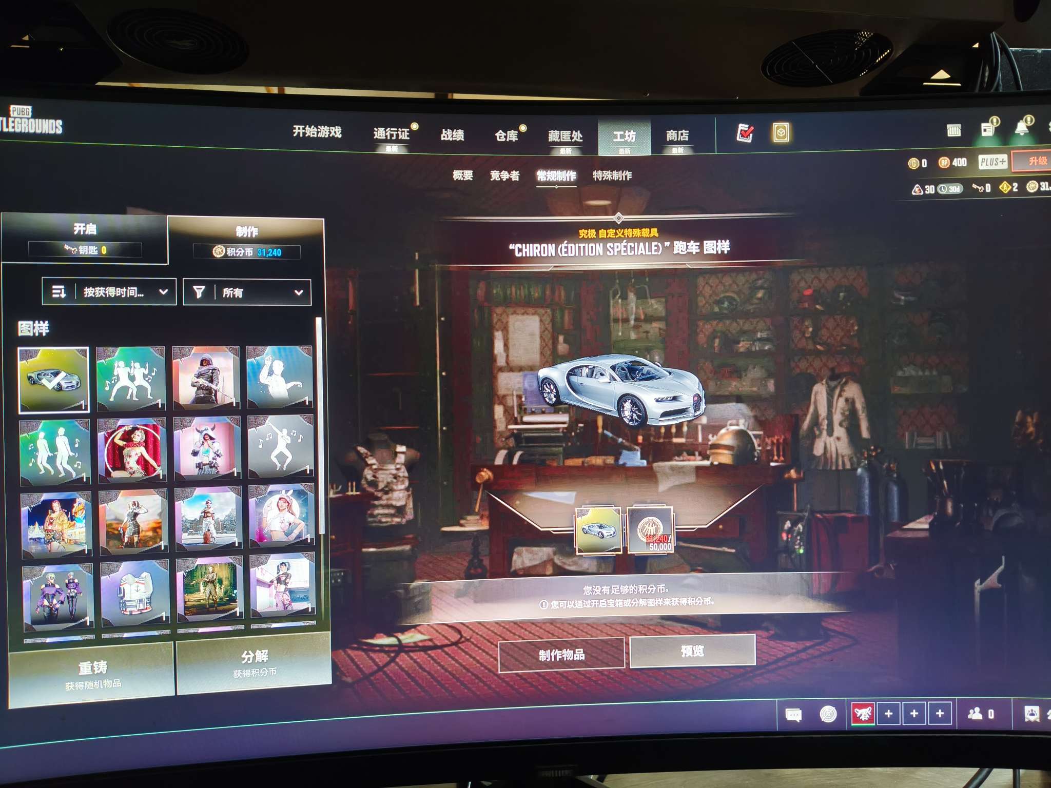绝地求生(PUBG)【端游】豪华版布加迪,工坊里面东西全分解了,还差八九千积分,目前积分41200