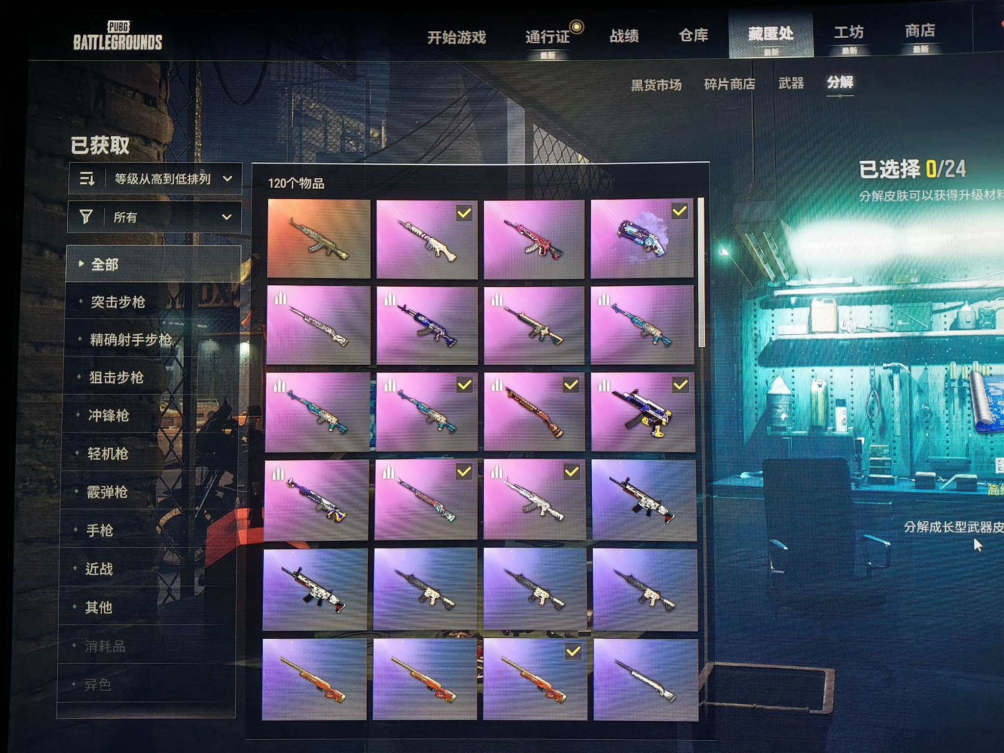 绝地求生(PUBG)【端游】120个枪皮,四载具,烟枪