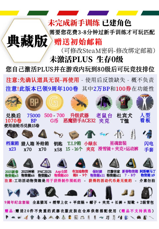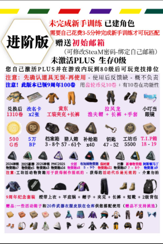 竞技版=已激活PLUS 80级+工坊箱+黑货券